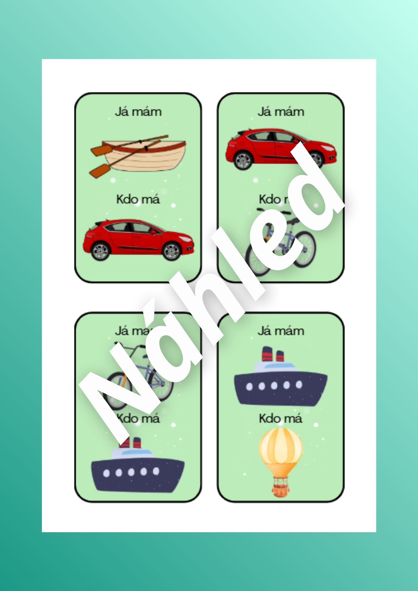 - Já mám, kdo má (str. 3-7) - děti si rozdají kartičky, určí se kdo začne, poté pokračuje další, dokud se nevystřídají všechny děti