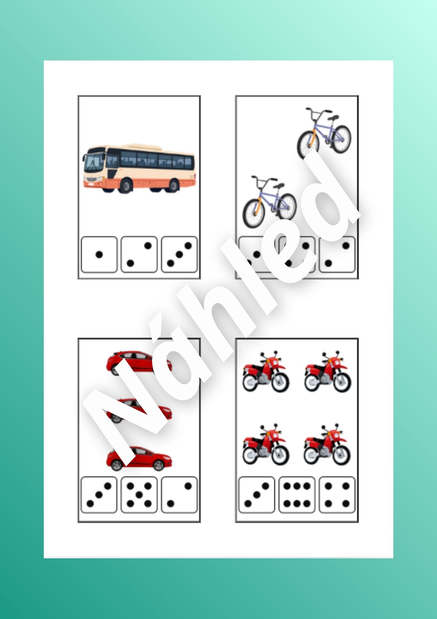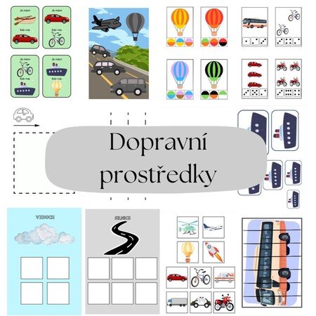 - Přiřazování dopravních prostředků (str. 23-28) - rozstříháme kartičky dopravních prostředků a pak je děti třídí podle toho, kde se nachází (voda, vzduch, koleje, silnice)