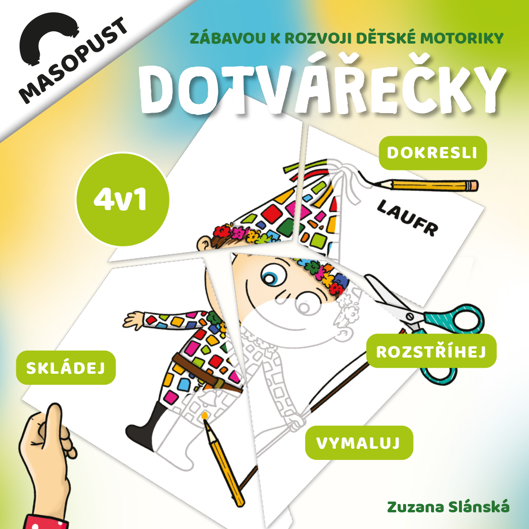 Masopustní DOTVÁŘEČKY přinášejí dětem hrvou a všestrannou aktivtu, ktrá v sobě spojuje kreslení, vybarvování, stříhání a skládání.