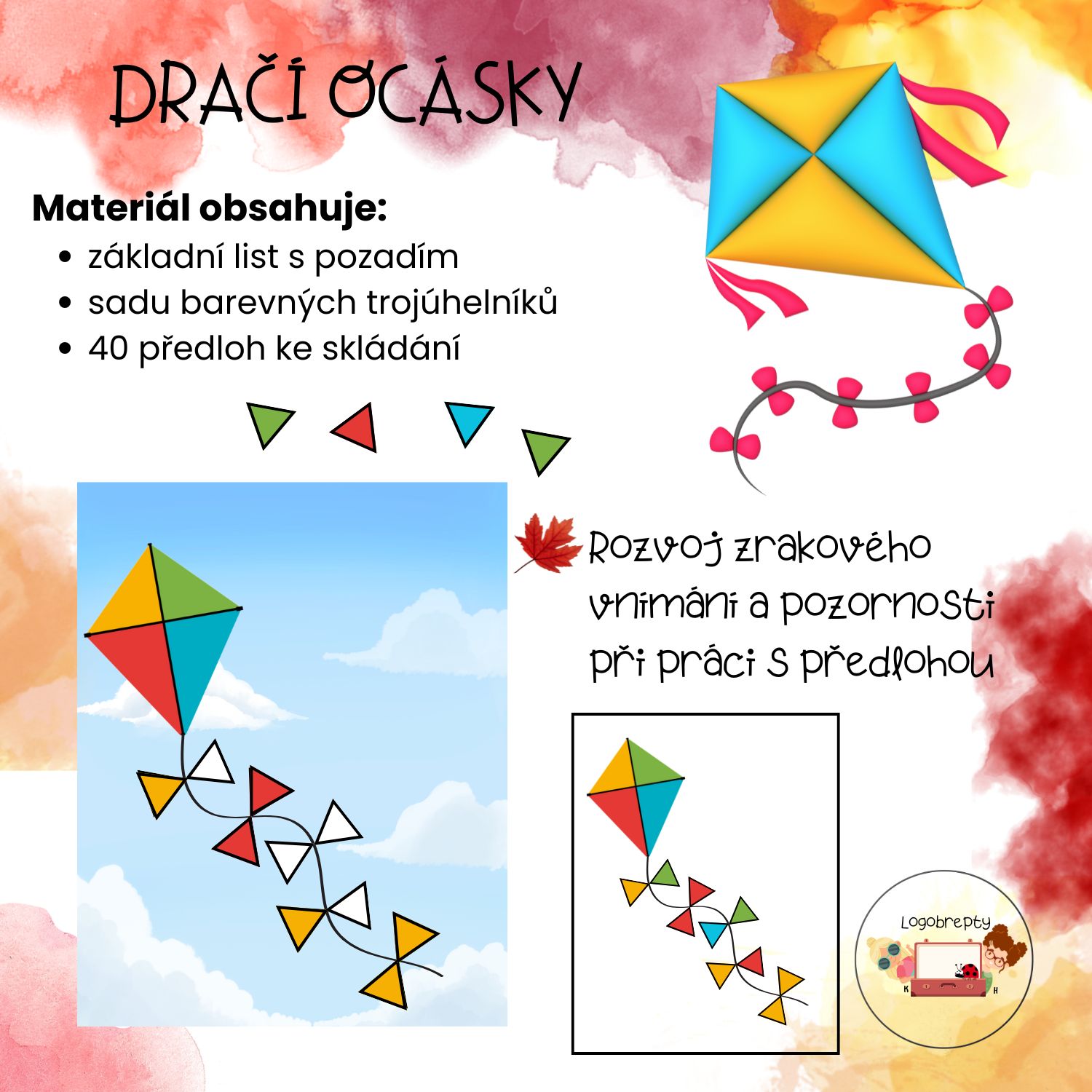 Pomůcka Dračí ocásky hravou formou rozvíjí zrakové vnímání, pozornost a schopnost pracovat podle předlohy.