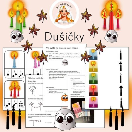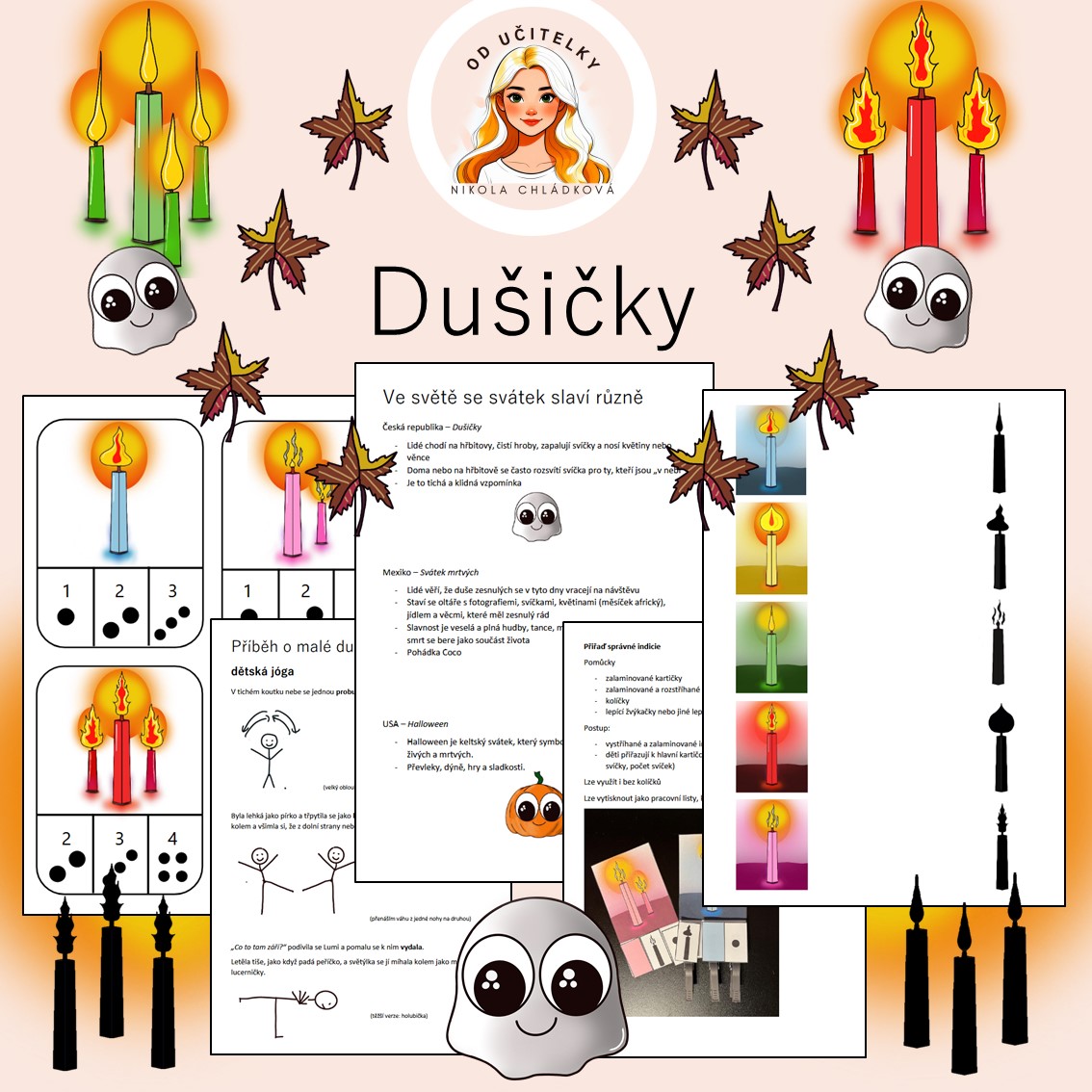 Soubor Dušičky je vytvořený s ohledem na věk dětí v MŠ – citlivě, hravě a s důrazem na rozvoj emoční inteligence a porozumění tradici.