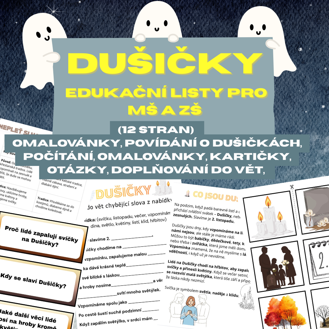 🌟 Tento balíček je ideální pro učitele, vychovatele i rodiče, kteří chtějí dětem přiblížit Dušičky hravě, zábavně a naučně! 🕯️🍂