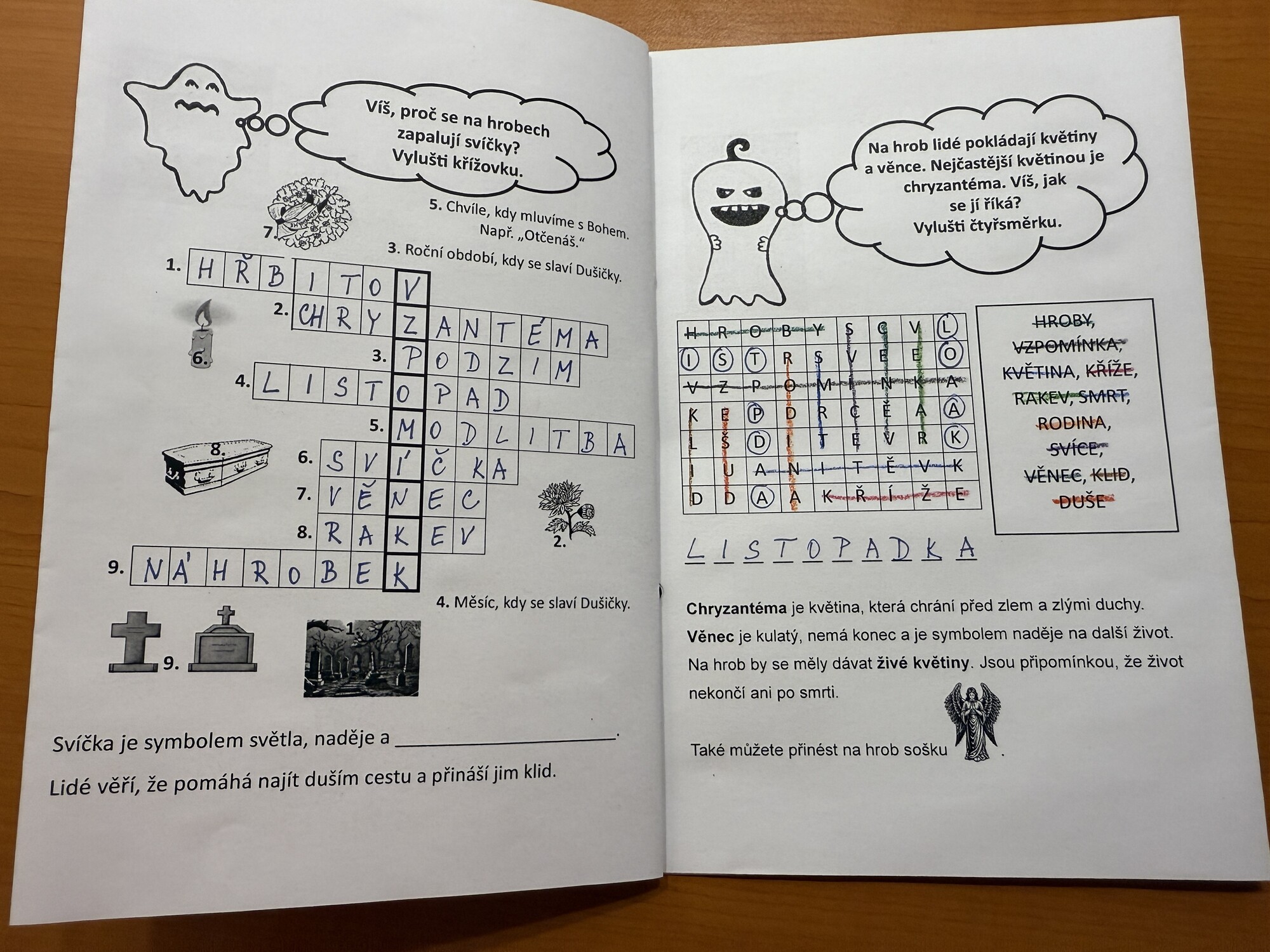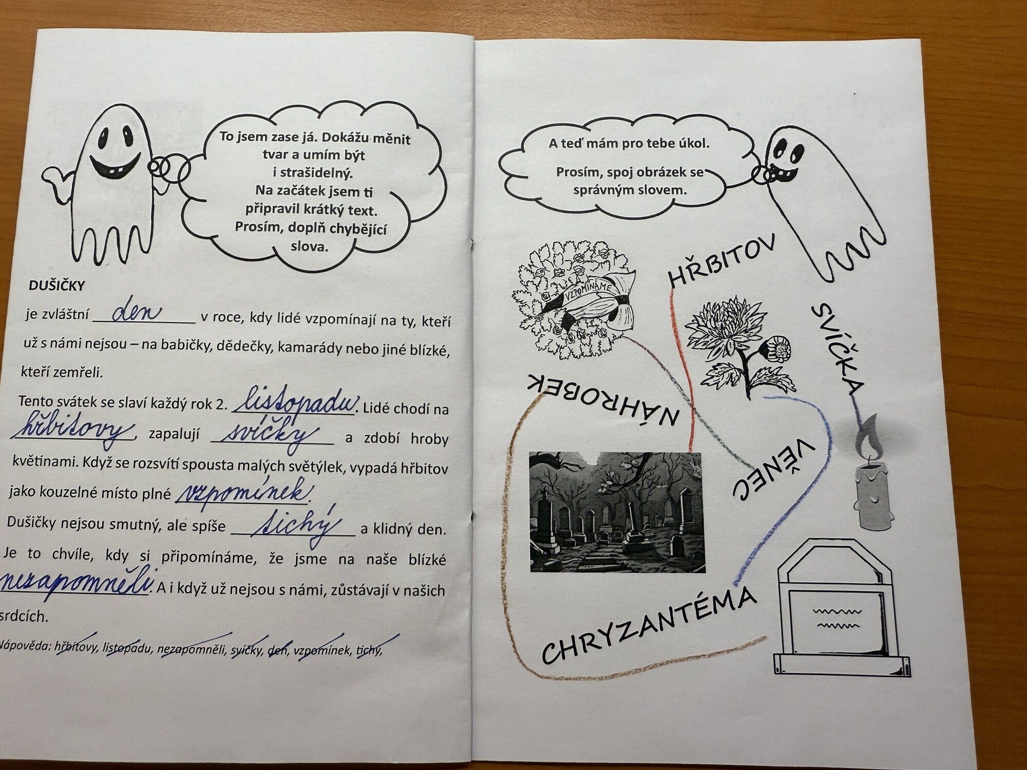 Cílem materiálu je seznámit žáky s Památkou zesnulých - DUŠIČKAMI - hravou a zábavnou formou.