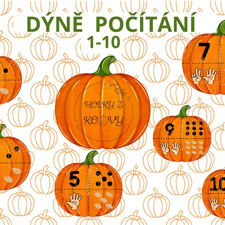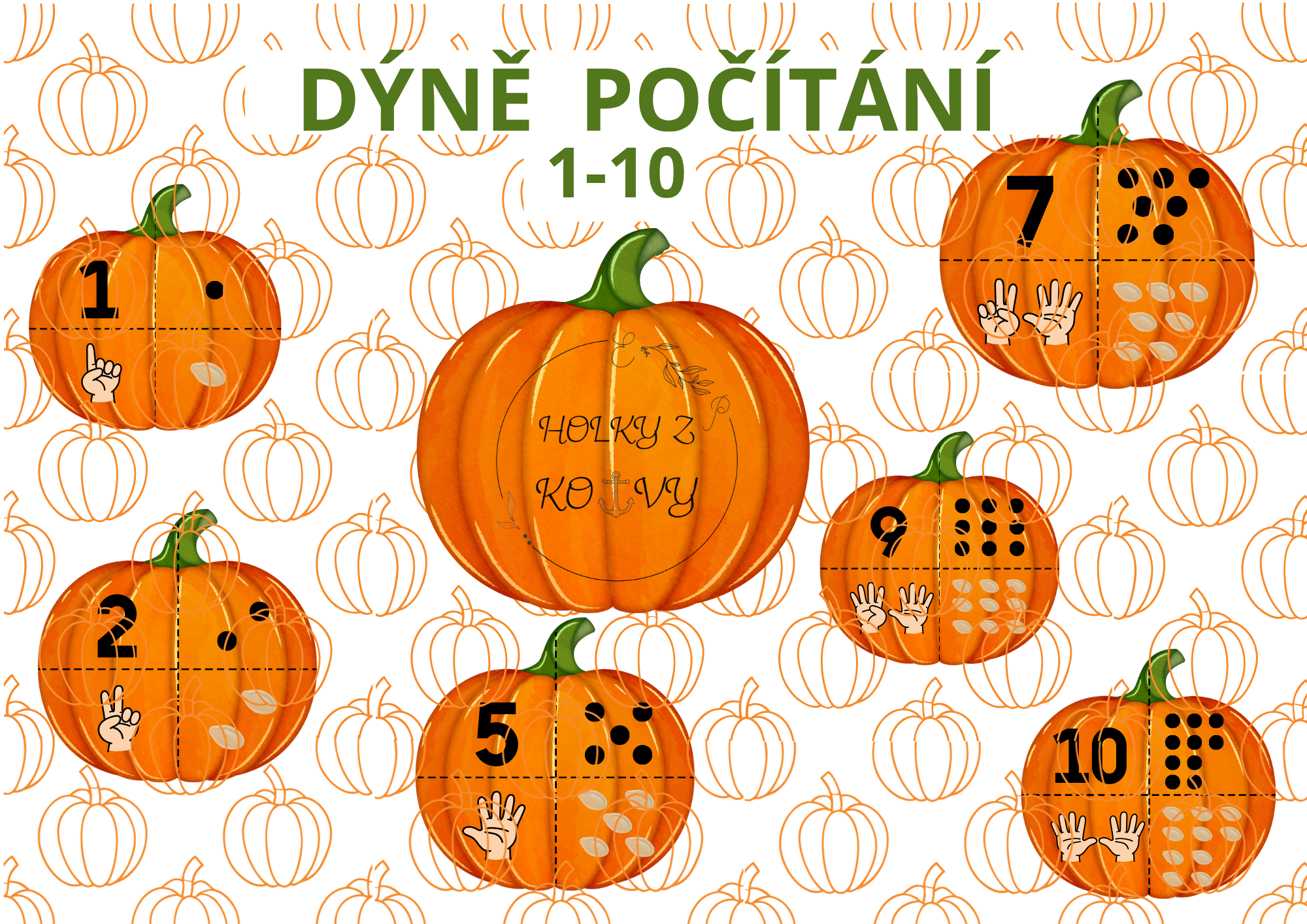 Jednoduchý materiál k procvičení počítání. Materiál stačí vytisknout, zalaminovat a rozstříhat. Děti pak následně skládají dýně se správným počtem k sobě.