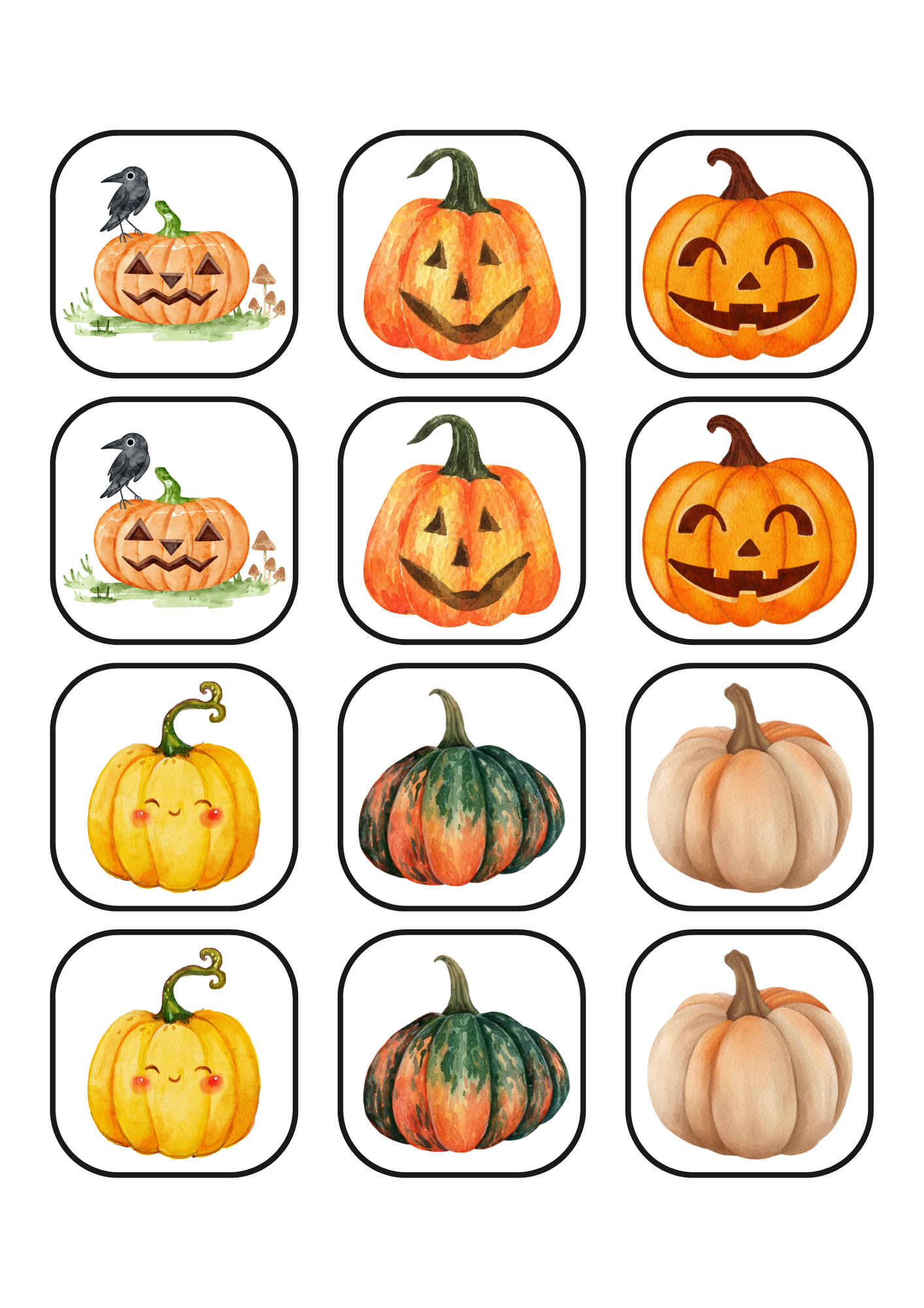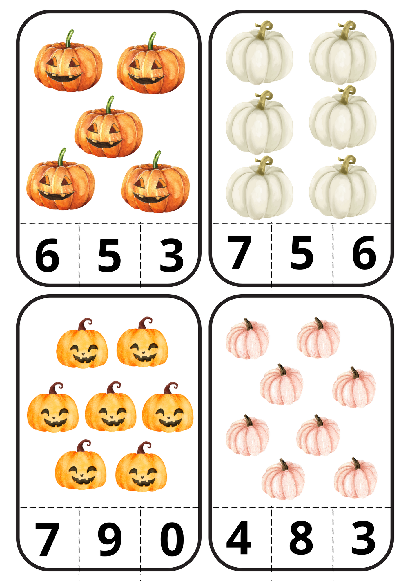 Sobor obsahuje: 20 kartiček - kolíčkování (počty 1-10), skládání dýní dle vzoru, dýňové pexeso🎃🎃🎃