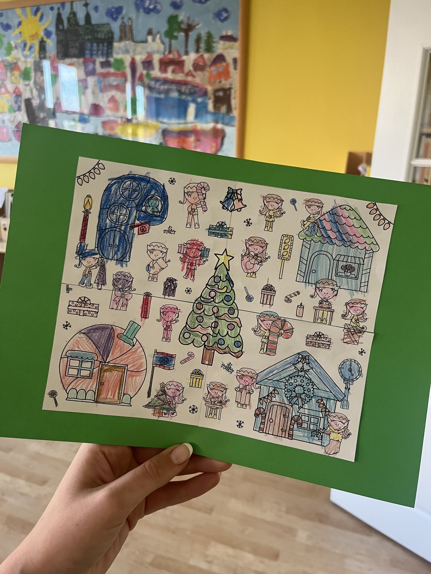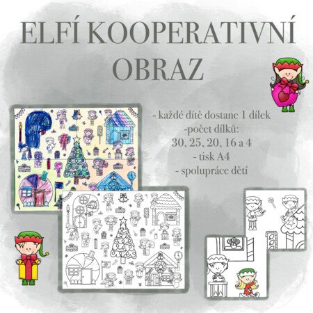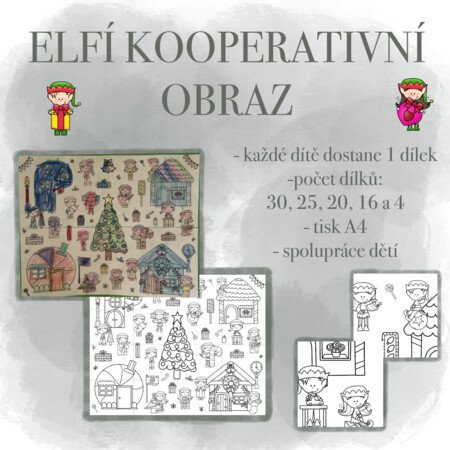 Tento soubor obsahuje elfí kooperativní obraz. Každé dítě dostane jeden dílek, a když se všechny jednotlivé části spojí, vznikne jeden velký společný obraz.
