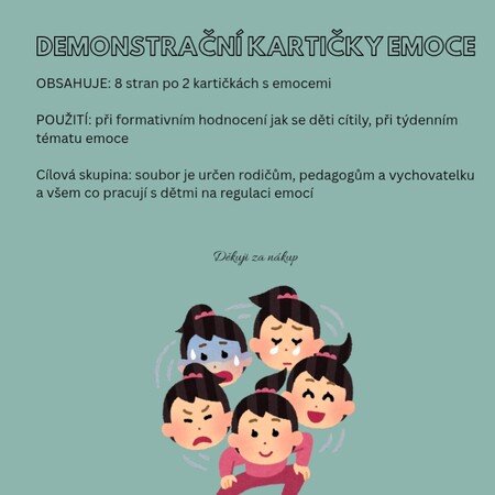 Tento soubor obsahuje 16 demonstračních kartiček k tématu emocí. Dají se využít jak pro samostatné téma, tak pro každodenní využití při komunikačním kroužku.