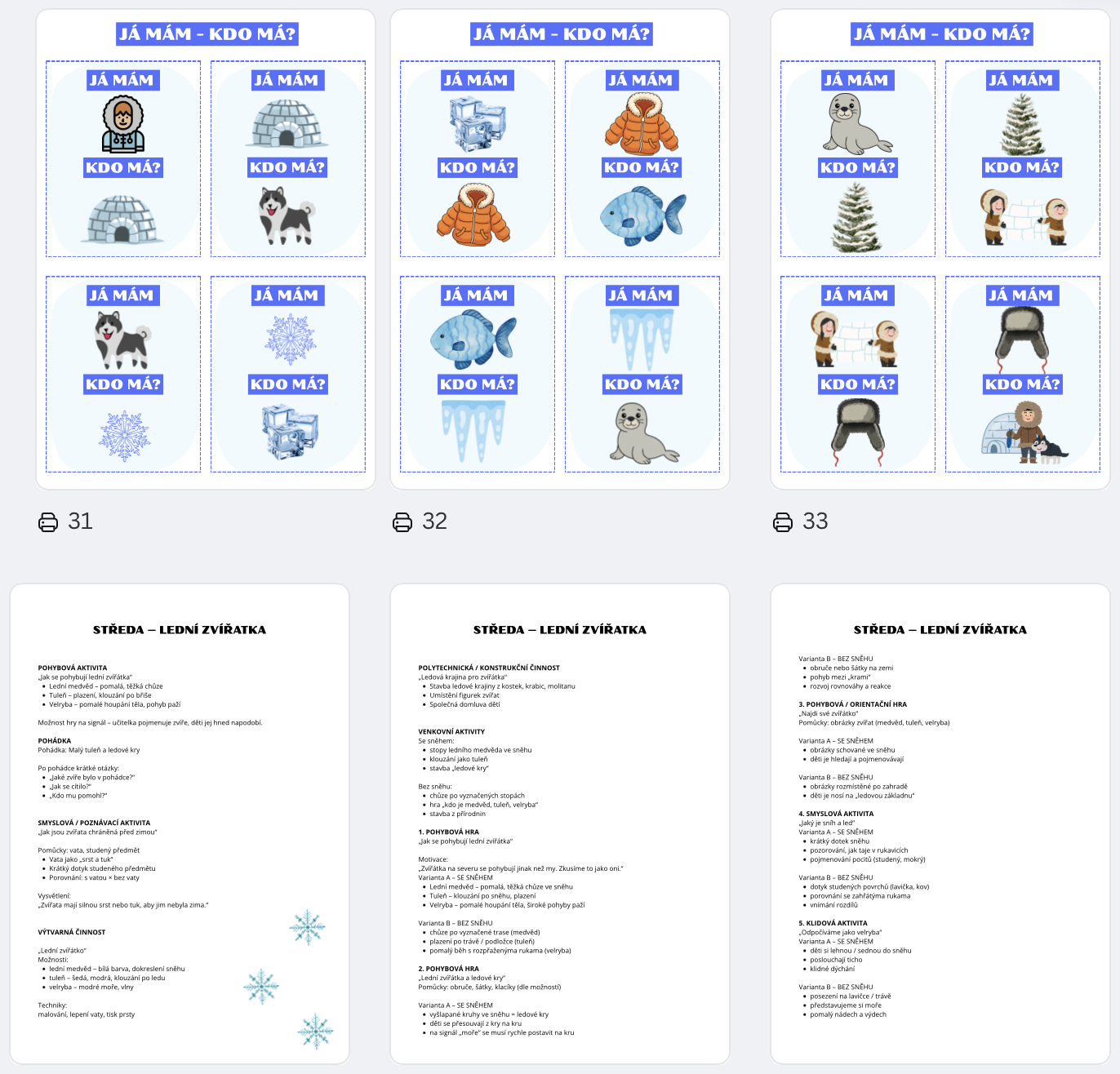 - venkovní aktivity (varianty se sněhem i bez sněhu)