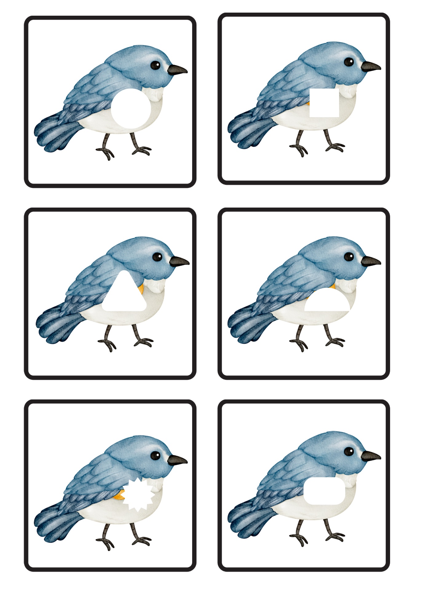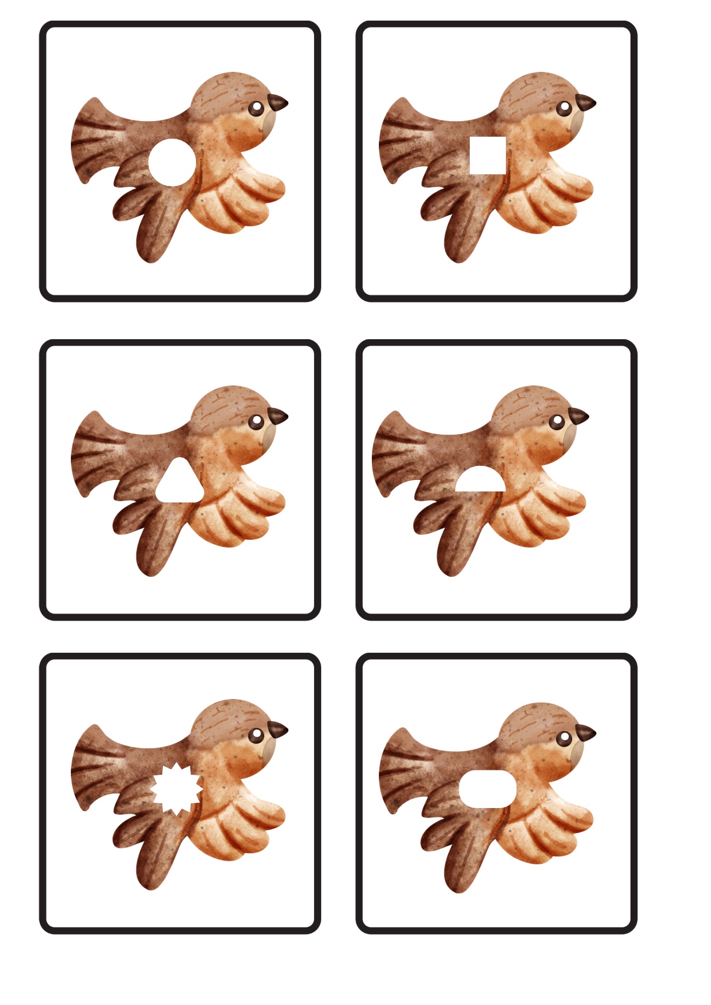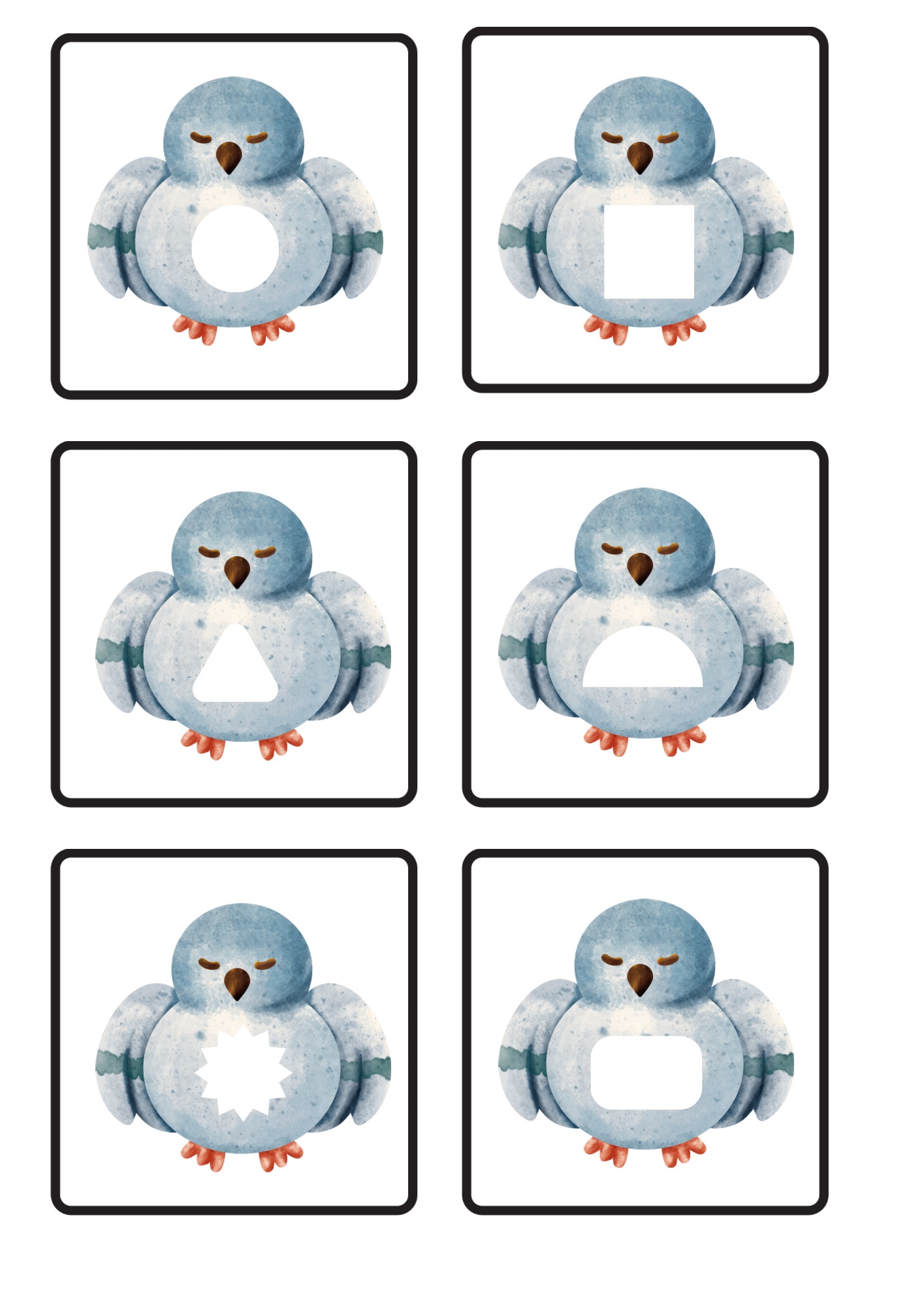 - 64 kartiček ptáčků s různými geometrickými tvary