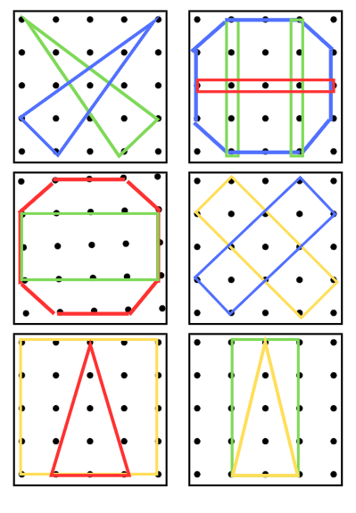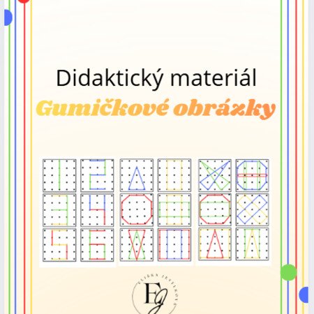 Materiál obsahuje vzorové karty, podle kterých děti skládají obrázky z barevných gumiček.