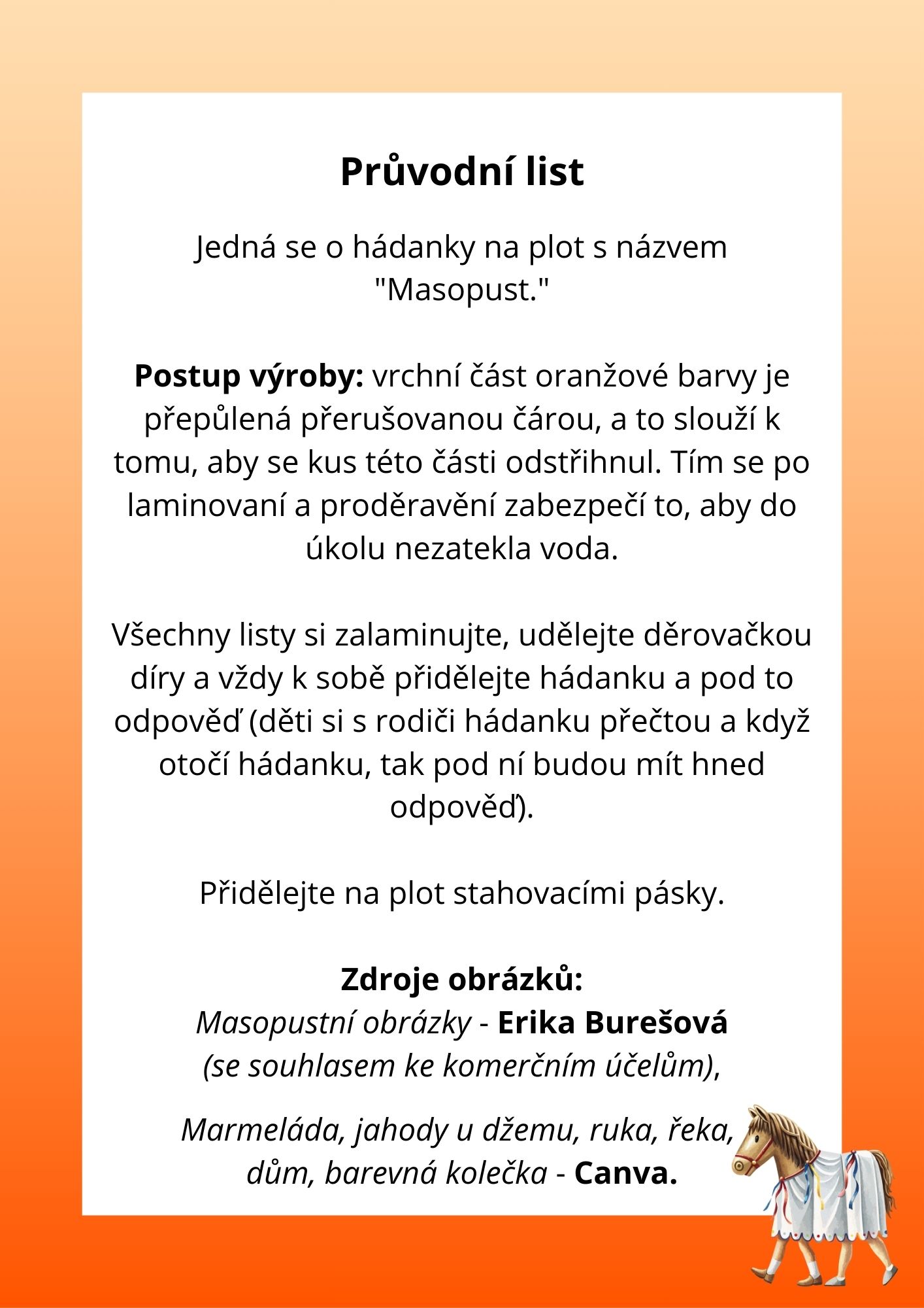 Jedná se o hádanky na plot s názvem "Masopust."