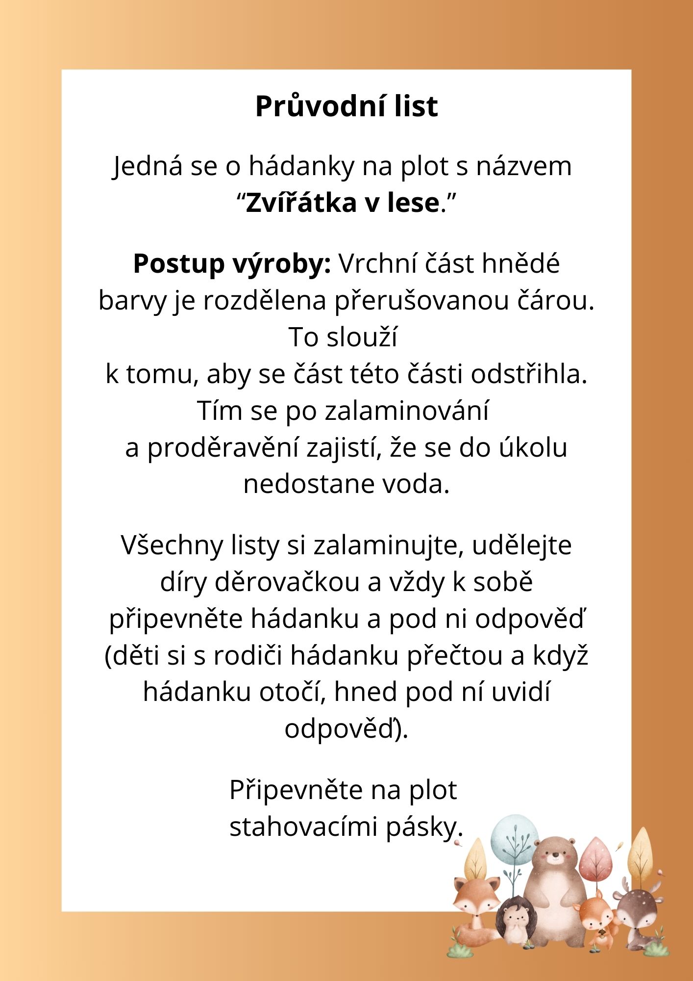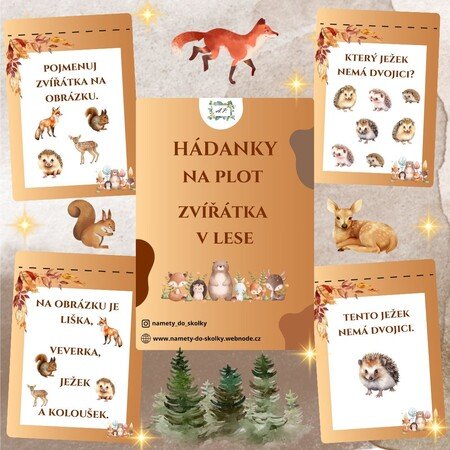 Jedná se o hádanky na plot s názvem “Zvířátka v lese.”