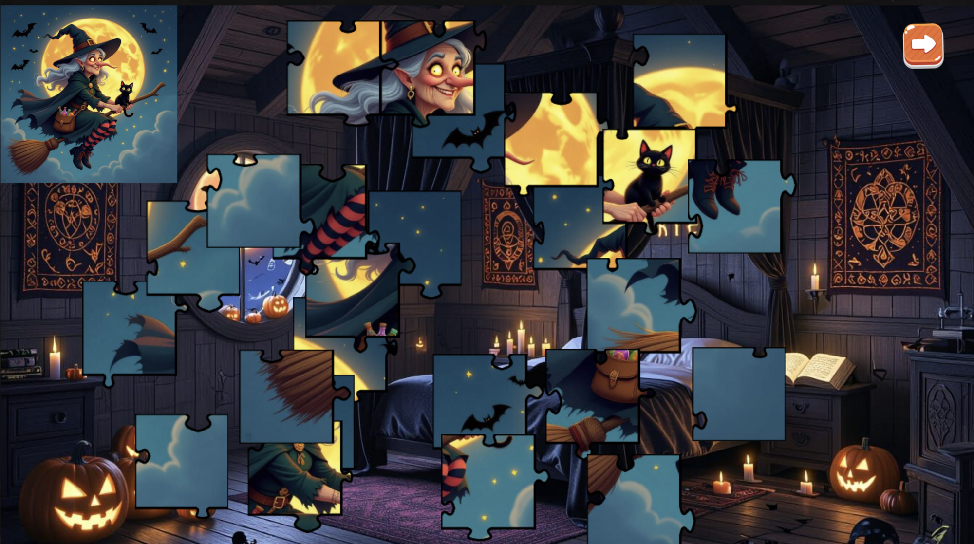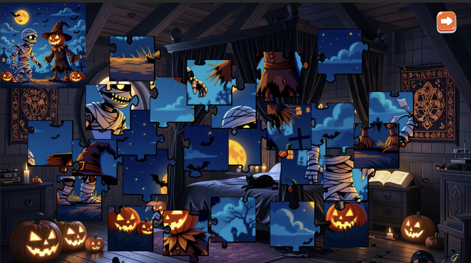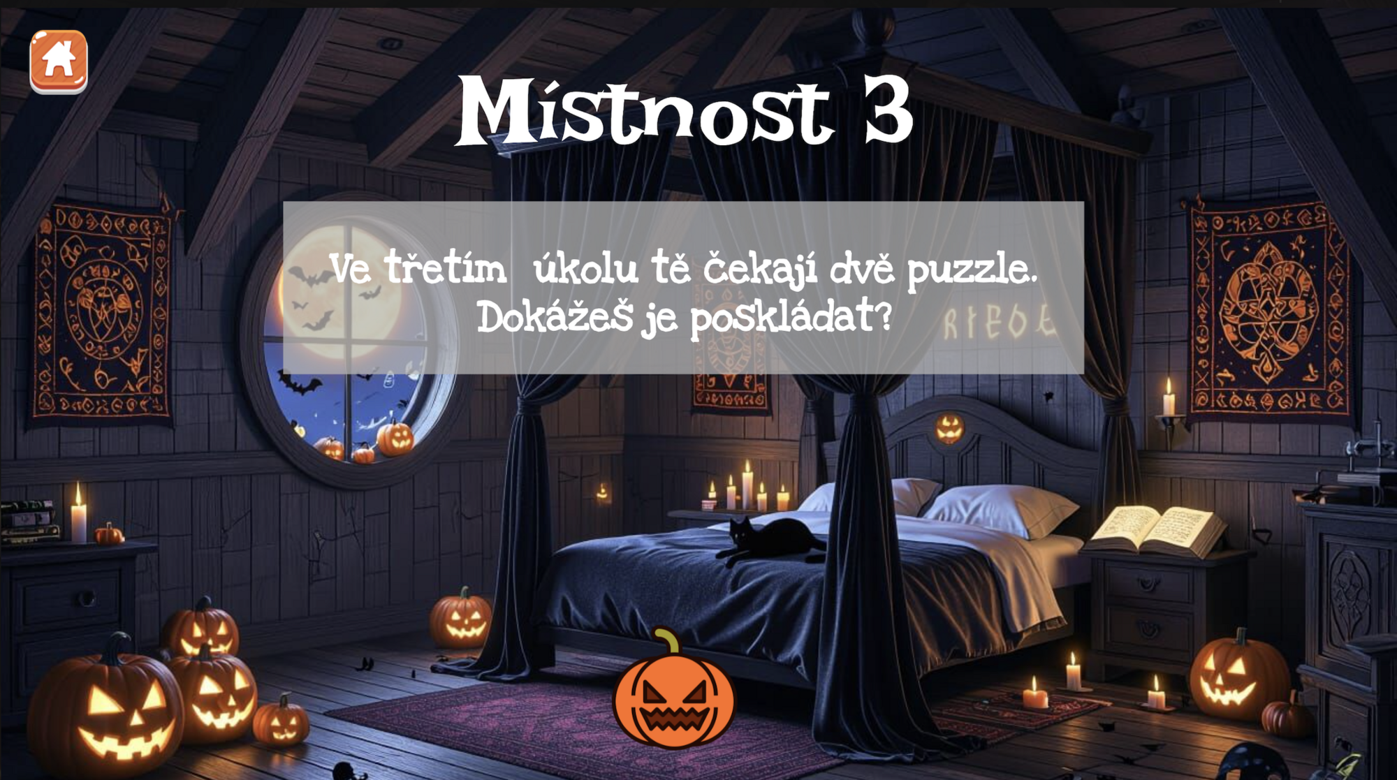 Dvě puzzle s halloweenskými obrázky, které rozvíjejí prostorové myšlení.