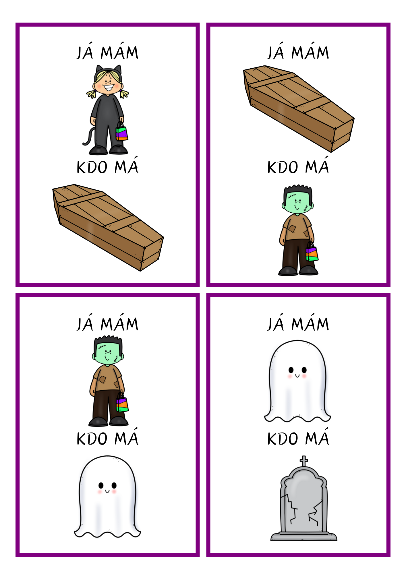 Oblíbená karetní hra s 24 kartičkami v halloweenském kabátku, která u dětí rozvíjí pozornost, soustředění a porozumění slyšenému. Ideální pro skupinovou výuku, logopedická cvičení i společné opakování učiva hravou formou.