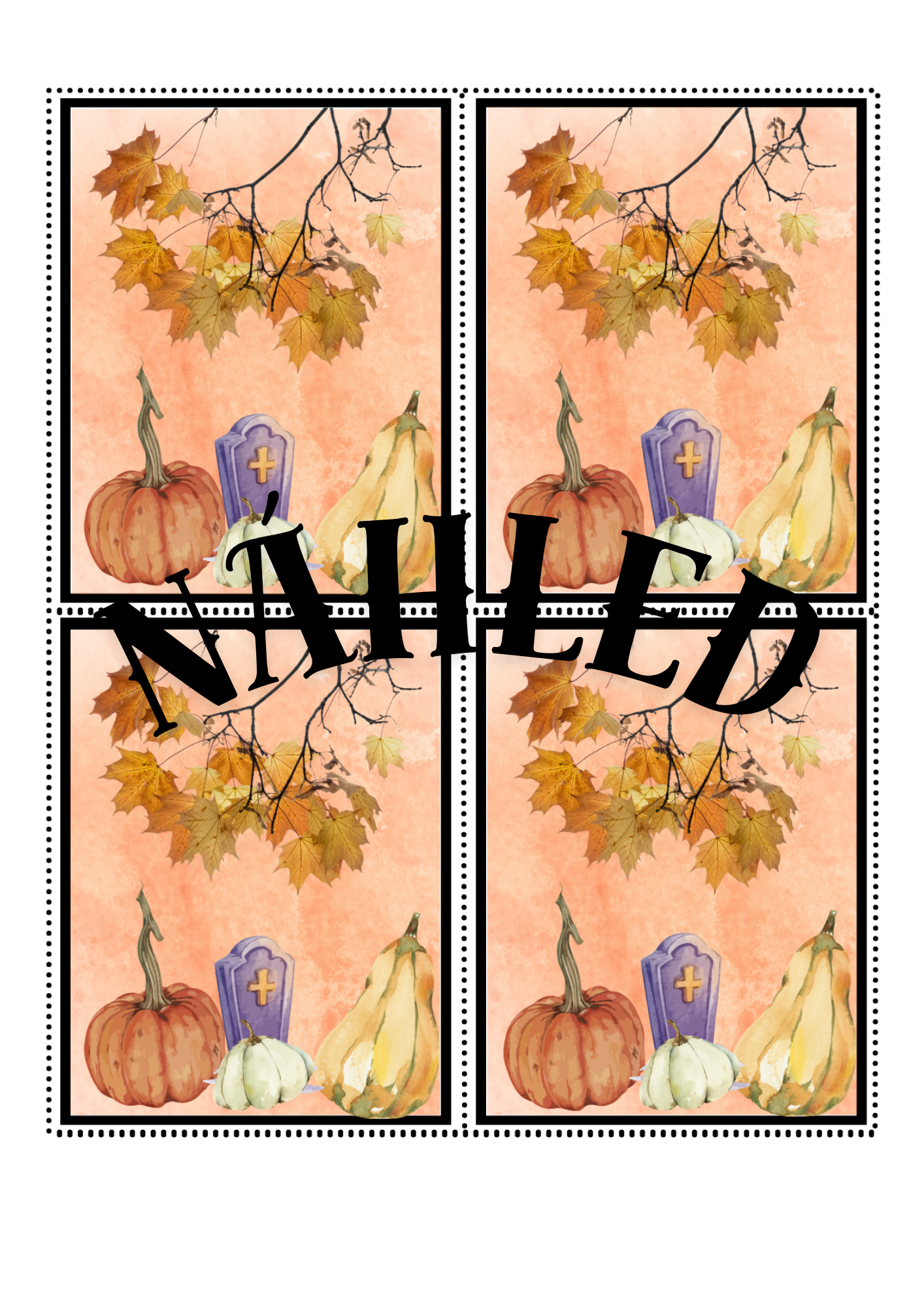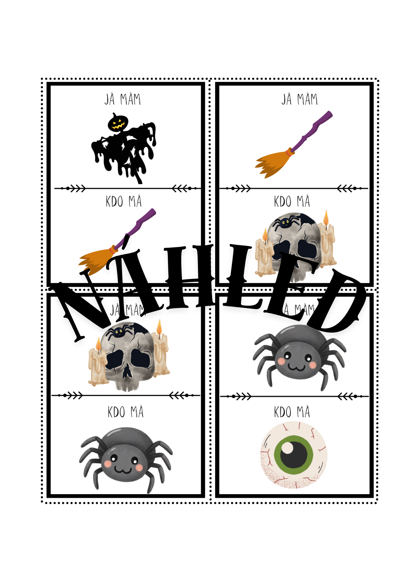 - 16 barevných kartiček s halloweenskými obrázky + zadní strana kartiček