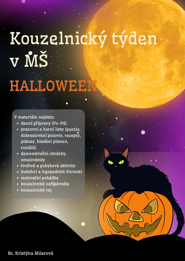 Kompletní vzdělávací materiál pro učitele mateřských škol, který propojuje hravou kouzelnickou a halloweenskou atmosféru s rozvojem všech oblastí RVP PV.