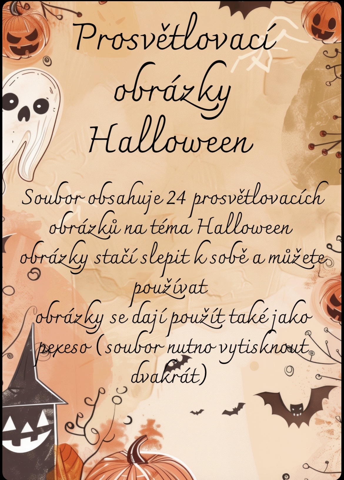 Stačí vytisknout, obrázky slepit k sobě a můžete si s dětmi užít spoustu zábavy s prosvětlovací deskou či baterkami. 🔦👻🎃