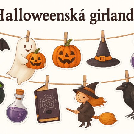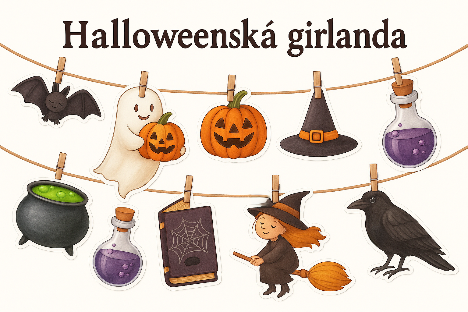 - Stačí vytisknout, vystřihnout a navléknout na provázek (připevnit kolíčky nebo přilepit izolepou) a je hotovo!