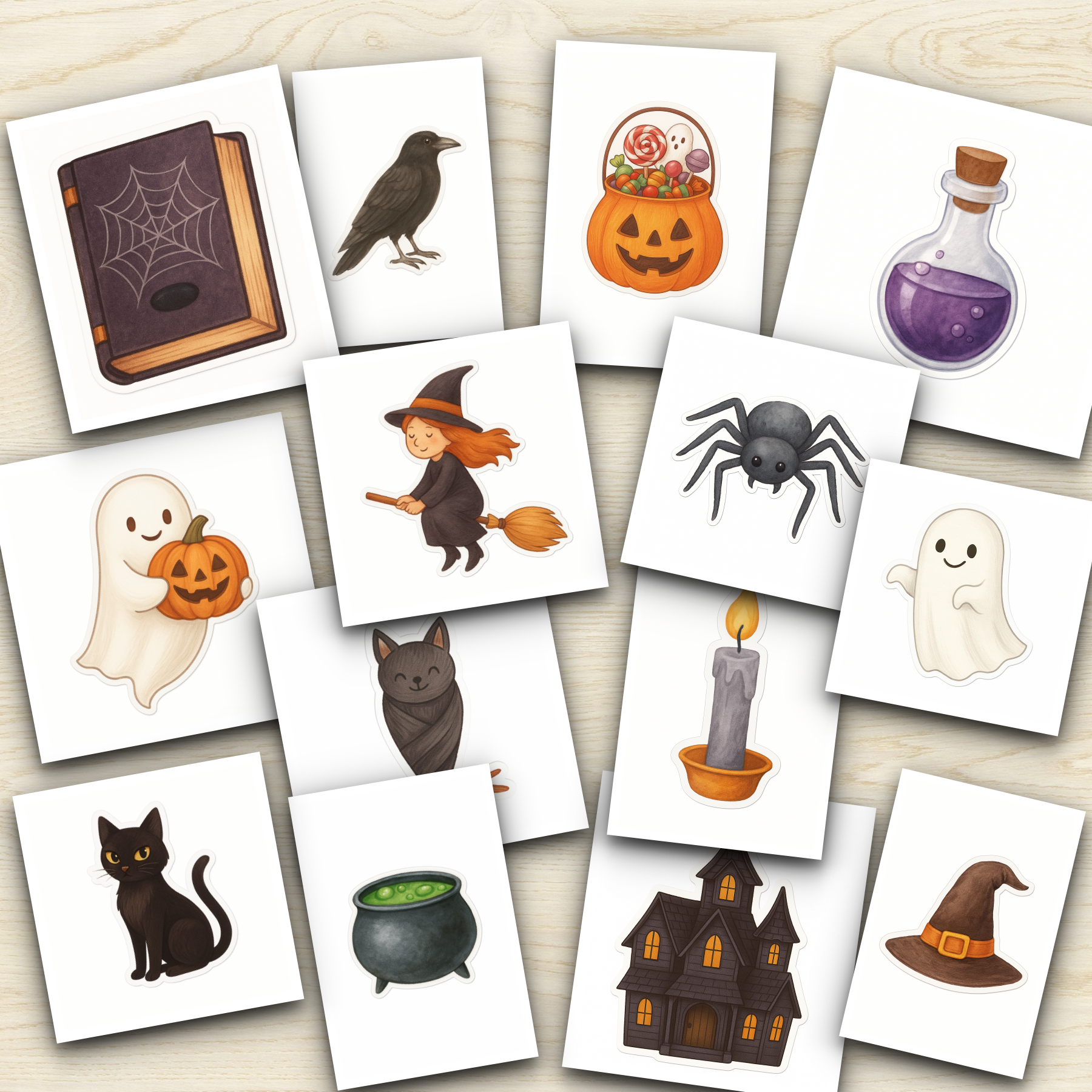 - Obsahuje 15 obrázků – duch, dýně, čarodějnice, netopýr, pavouk, lektvary a další halloweenské motivy + návod na přípravu.