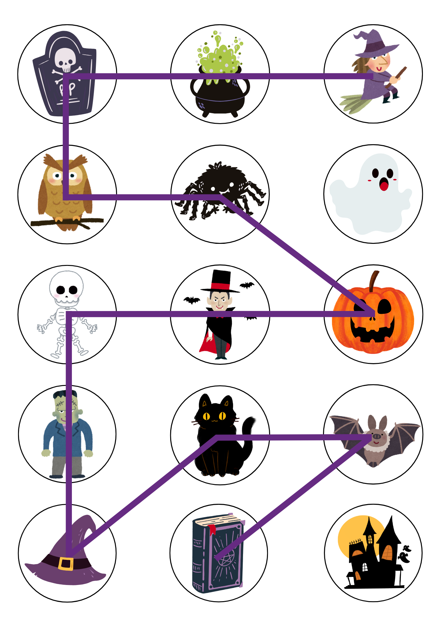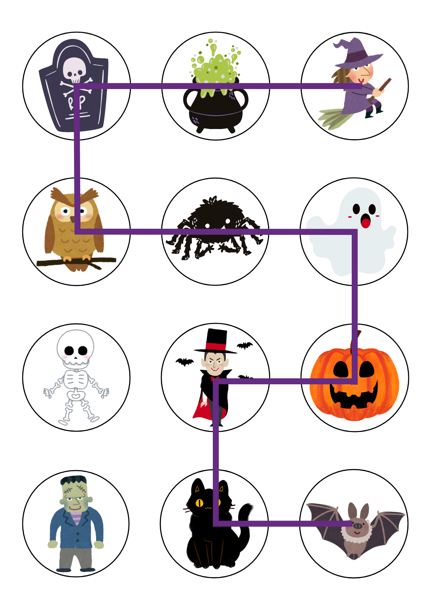 Obrázky vybrané orientační dráhy rozložte na zem podle uspořádání na navigační kartě. Děti mohou dráhu sami procházet podle navigačních karet nebo mohou vytvořit dvojice, kdy jedno dítě naviguje a druhé dítě dráhu prochází podle pokynů vpravo, vlevo, dopředu nebo složitěji jeden krok vpravo, dva kroky dopředu...