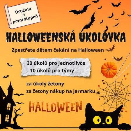 Děti plní jednotlivé úkoly a za každý získávají žetony. Na závěr – ideálně 31. října – uspořádáte halloweenský jarmark nebo párty, kde děti žetony využijí při nákupu.