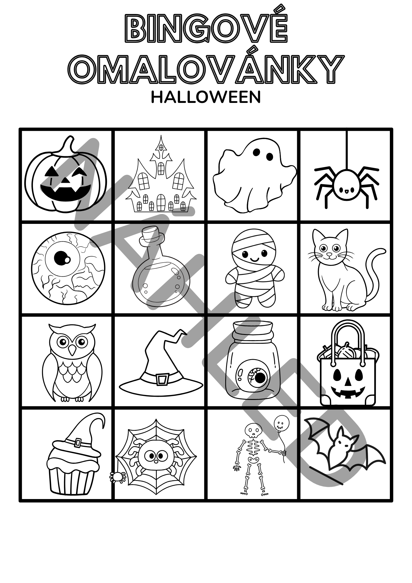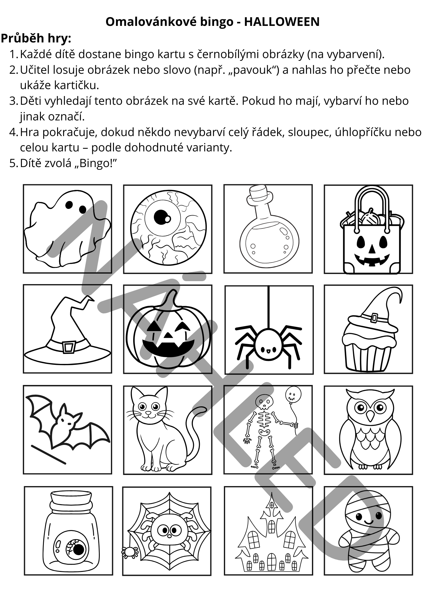 - Každé dítě dostane bingo kartu s černobílými obrázky (na vybarvení).