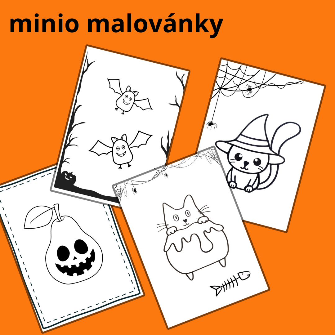 - mini halloweenské omalovánky – můžete je použít jako drobnou odměnu nebo tematickou dekoraci