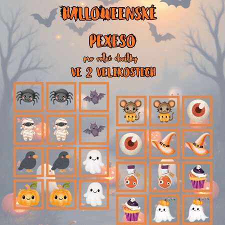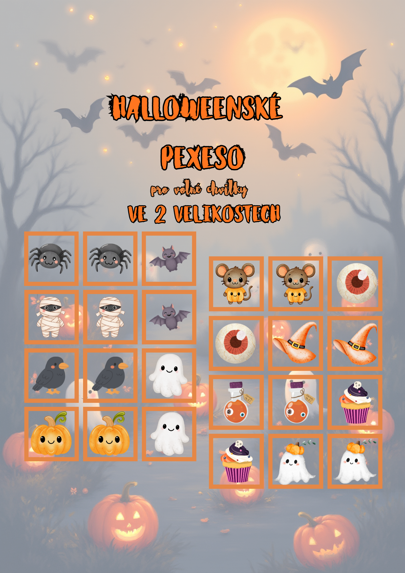 Halloweenské pexeso pro volné chvilky, dostupné ve 2 velikostech 🎃