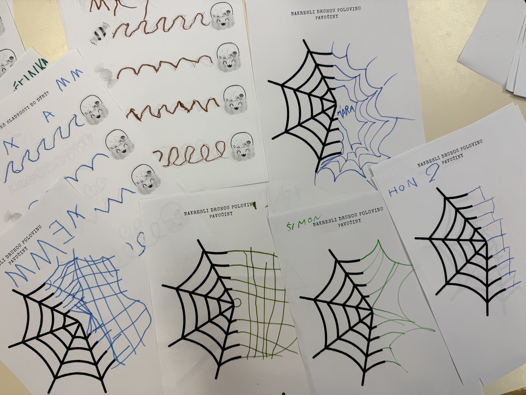 Nakresli druhou polovinu pavučiny.