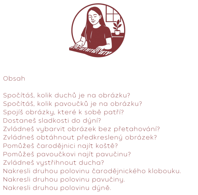 Materiál se zaměřuje především na počítání, spojování, vybarvování a dokreslování. Je určen pro věkově smíšené třídy mateřské školy.