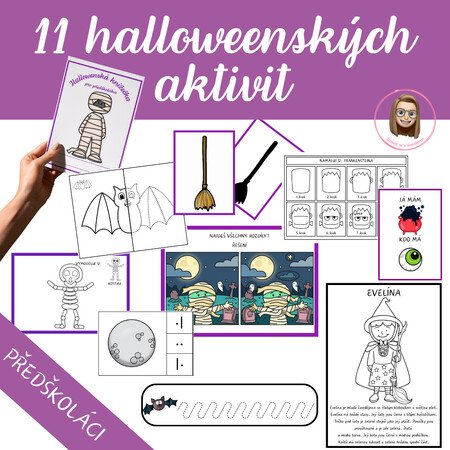Velký tematický soubor devíti halloweenských materiálů plný zábavných a tvořivých úkolů, které propojují učení, hru a rozvoj klíčových dovedností dětí v MŠ a na 1. stupni ZŠ.