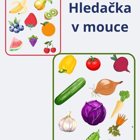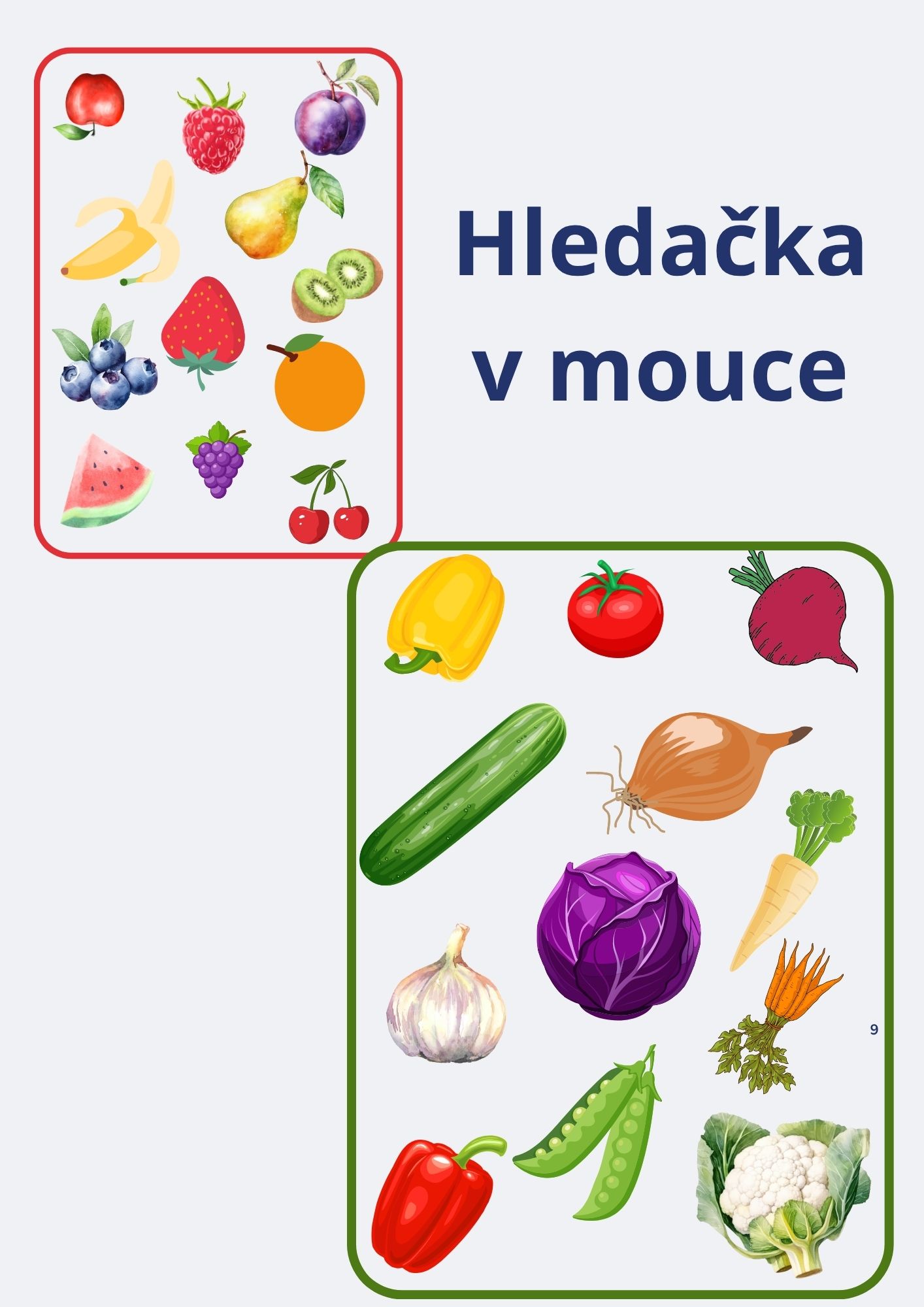 Zalaminovaný list s obrázky se vloží do misky/tác a zasype se moukou. Děti pomocí prstu nebo štětce hledají jednotlivé obrázky ukryté pod moukou. Jakmile obrázek najdou, zaškrtnou ho na přiložené kartičce nebo ho pojmenují nahlas.