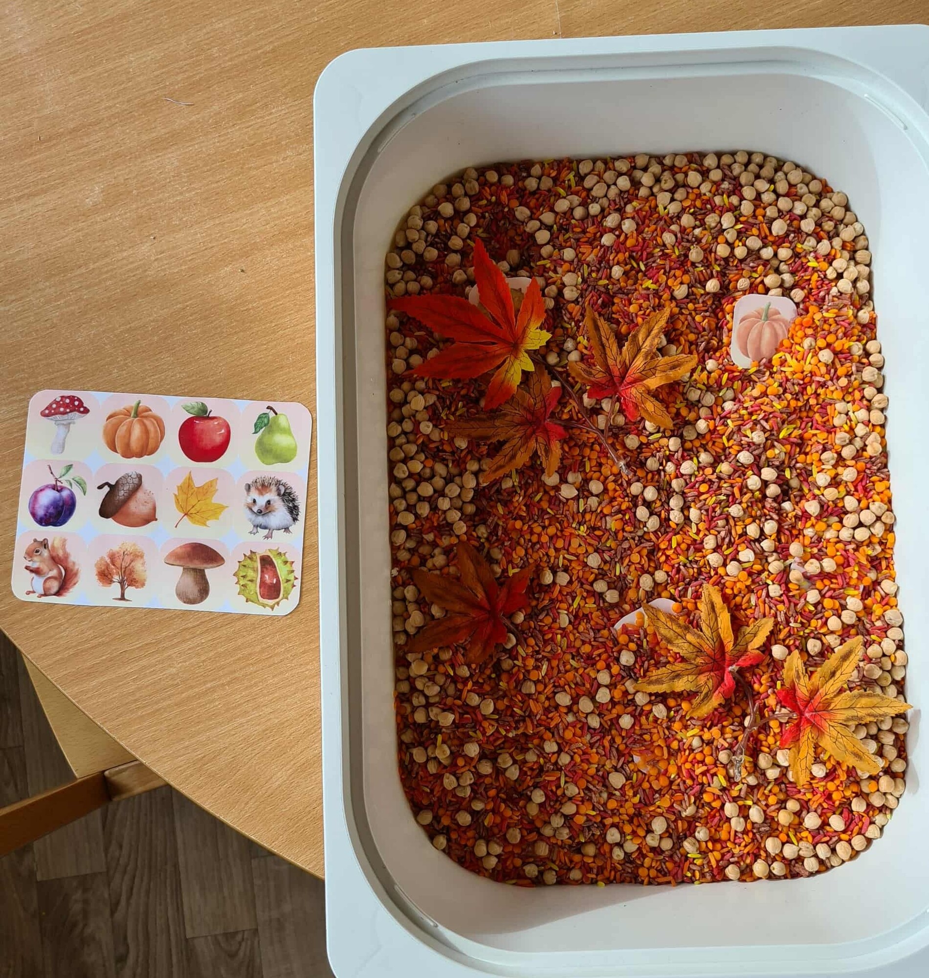 Obrázky na sensory play. Jednu sadu obrázků zalaminujte, vystříhejte a schovejte třeba do rýže, druhou sadu zalaminujte a vystřihněte vcelku. Nechte děti hledat a škrtat nebo přikládat.