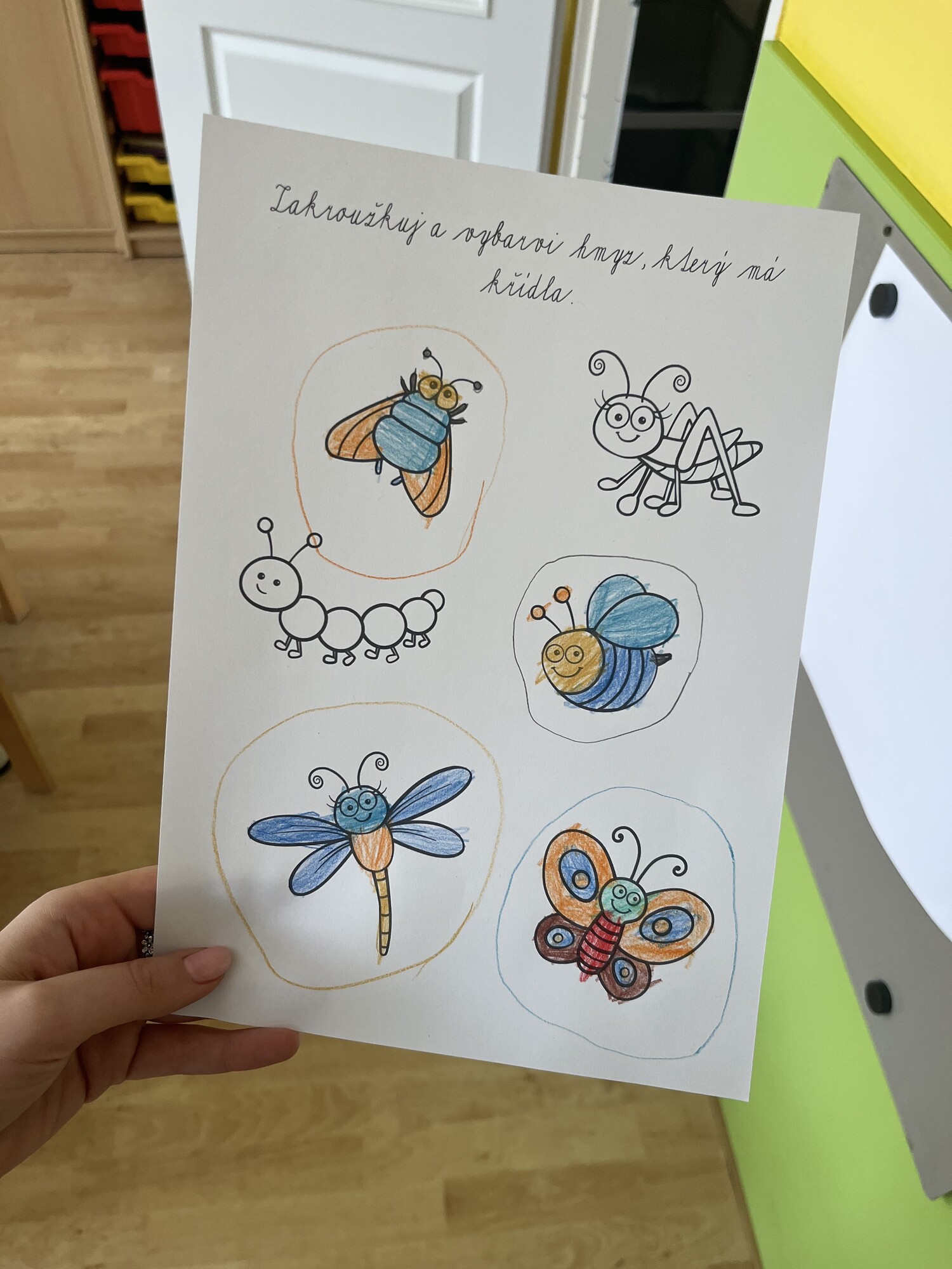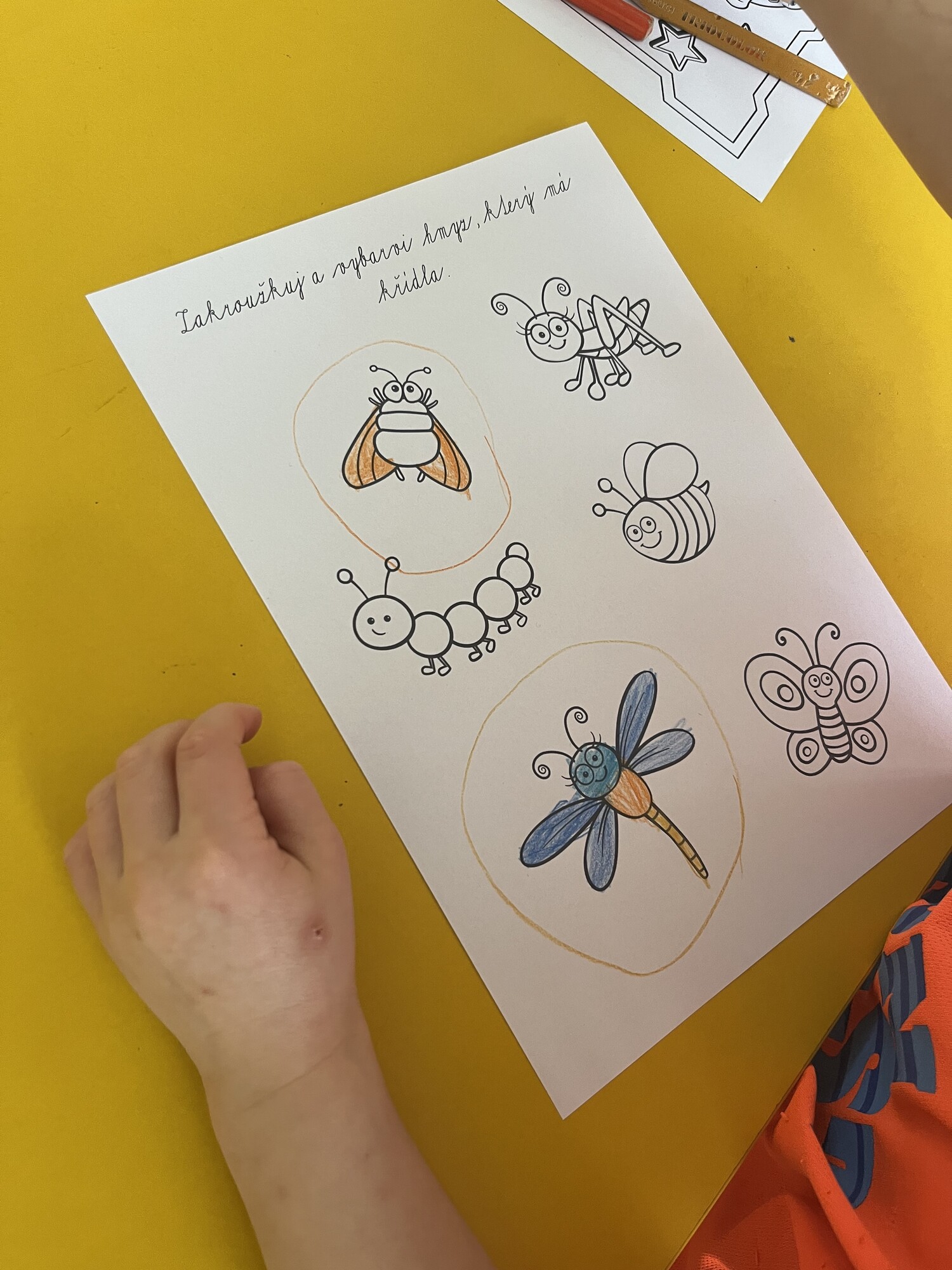 - zakroužkuj a vybarvi hmyz, který má křídla