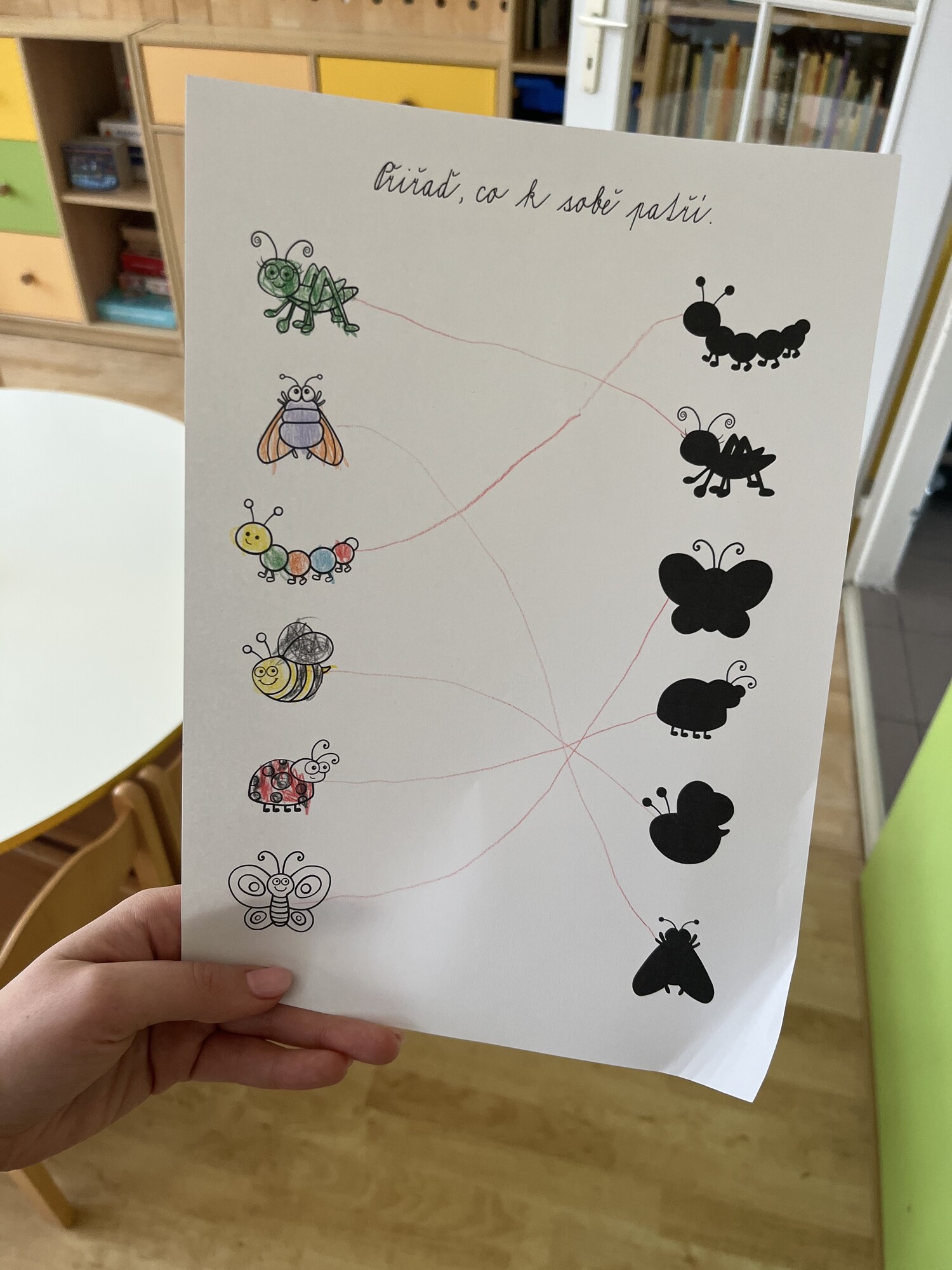 - děti si vybarví půlky obrázků, pak si je vystřihnout, spojí je se stínem a nalepí k sobě