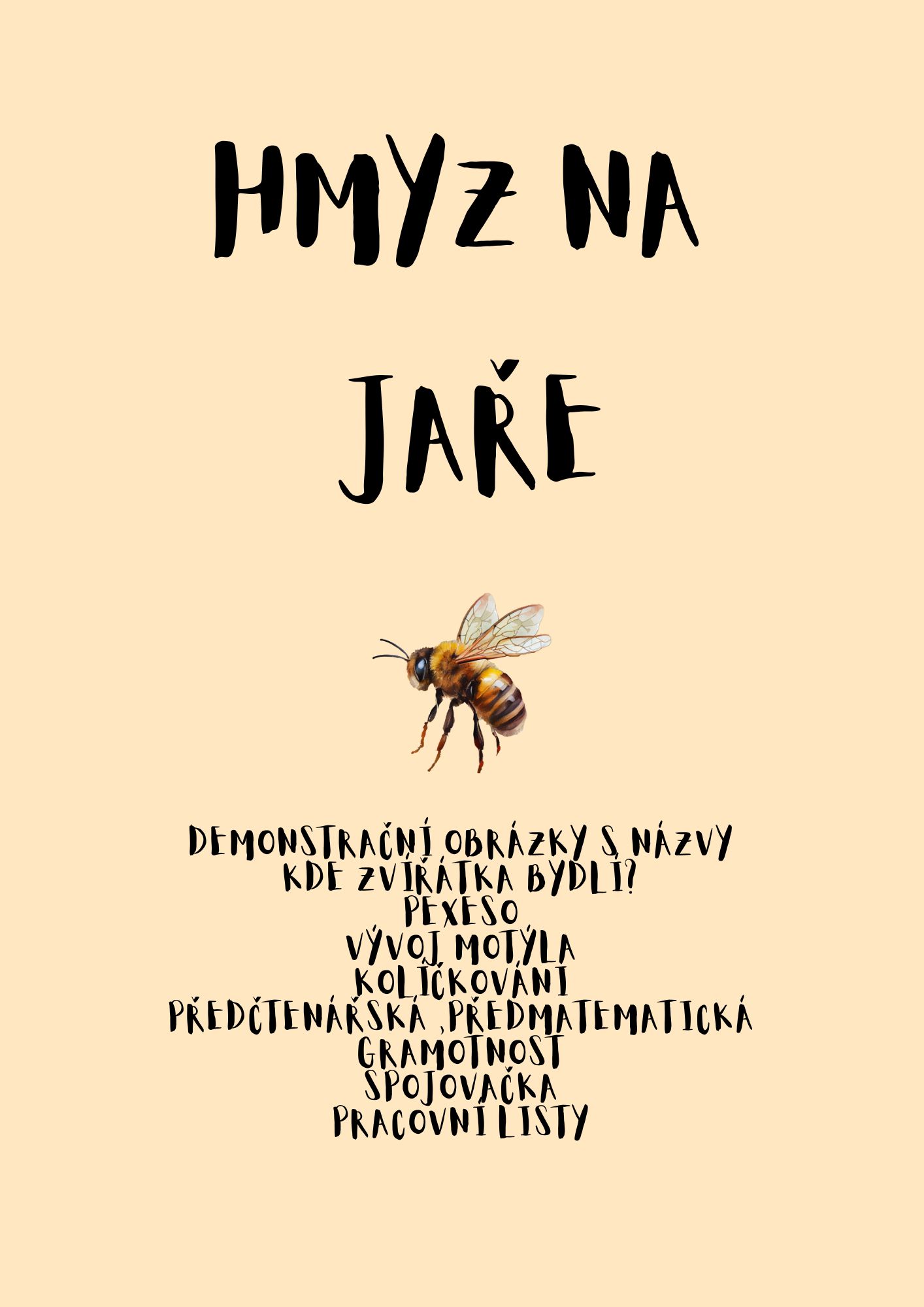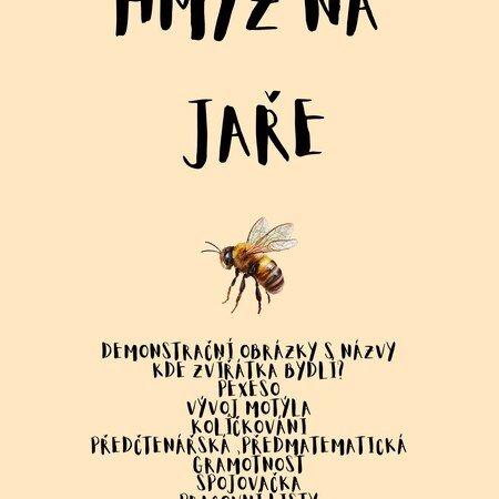 Soubor aktivit zaměřený na hmyz, který se objevuje na jaře.🦋🐝🪰Děti se hravou formou seznamují s běžným hmyzem, který mohou pozorovat na louce, na zahradě nebo u květin, a poznávají jeho život, prostředí i význam v přírodě.