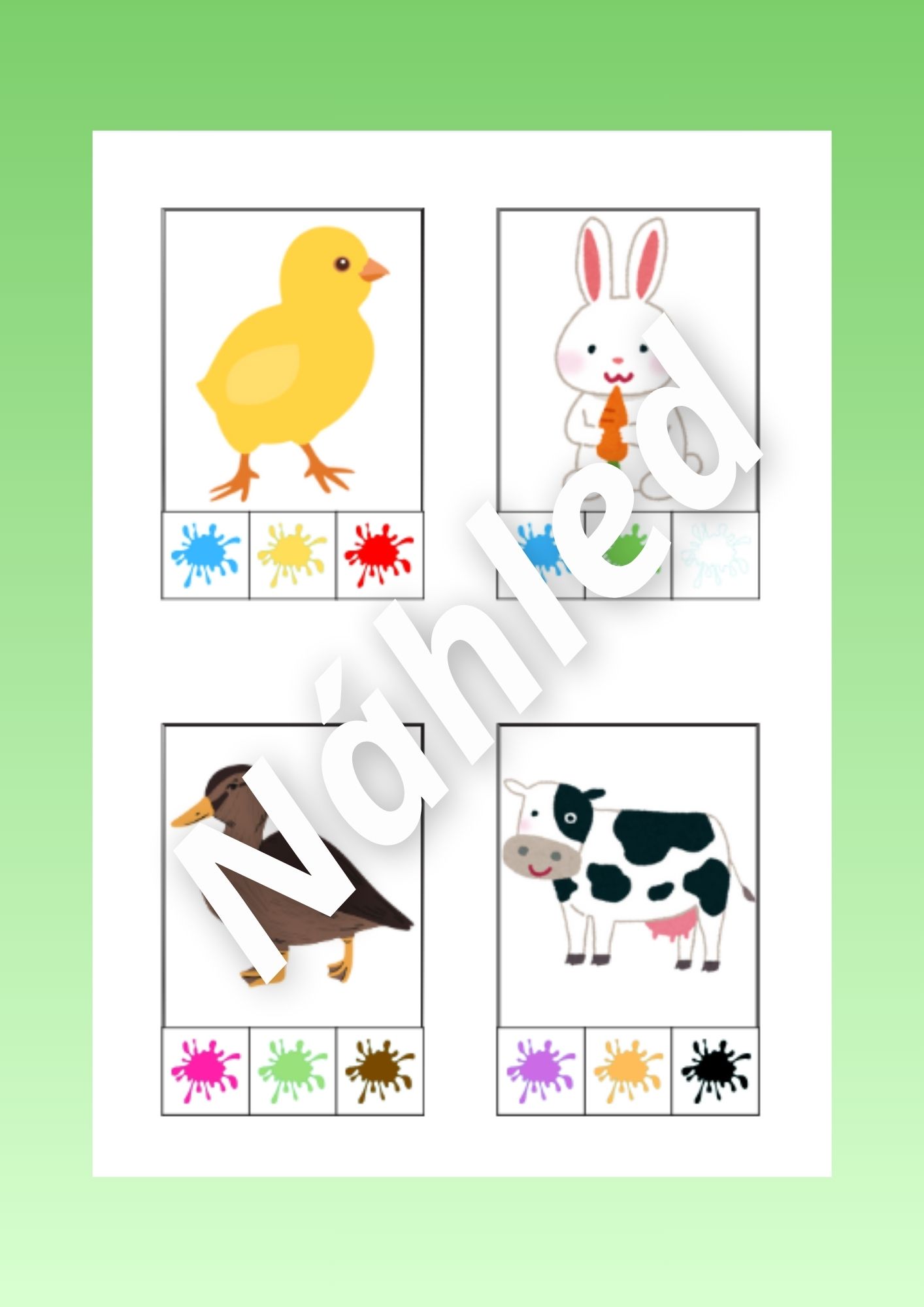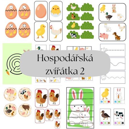 - Postřehovka hospodářská zvířata (str. 26-29) - děti si rozdají kartičky a poté hledají shodné obrázky, procvičují pozornost a zrakové vnímání