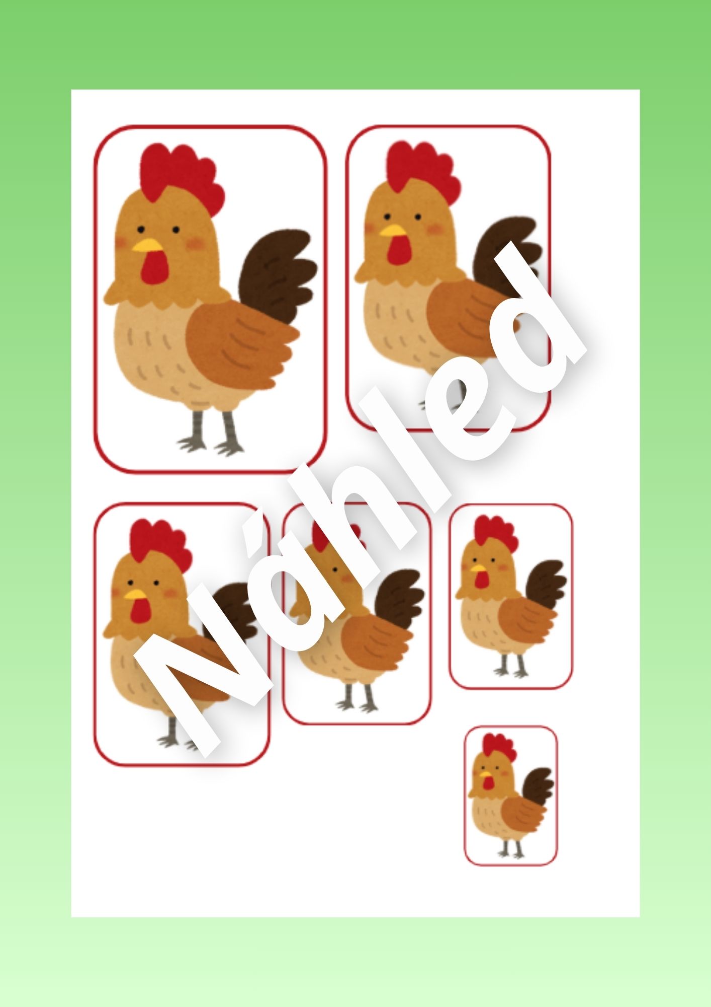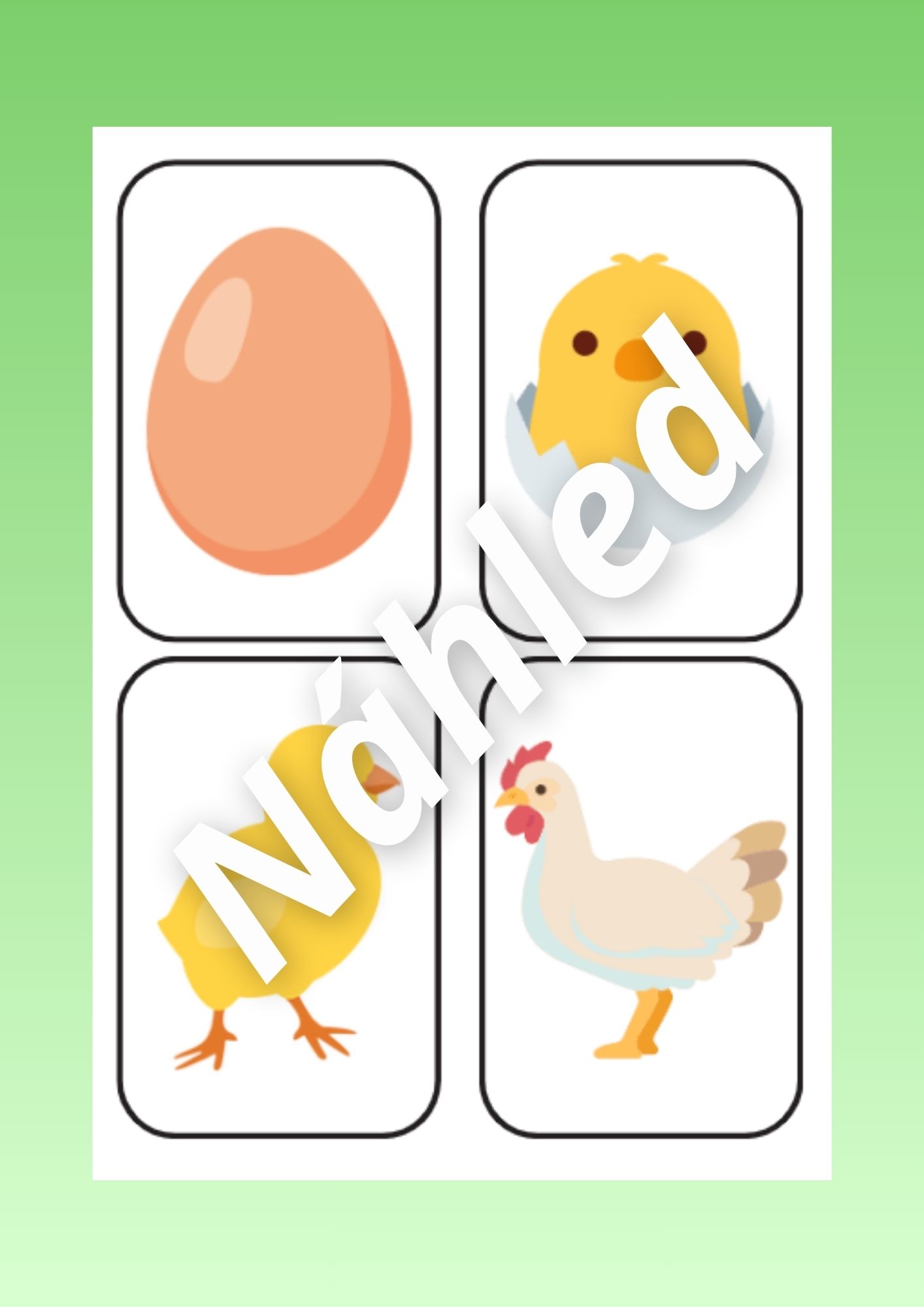 - Časová posloupnost slepice (str. 32) - děti skládají obrázky podle časové posloupnosti