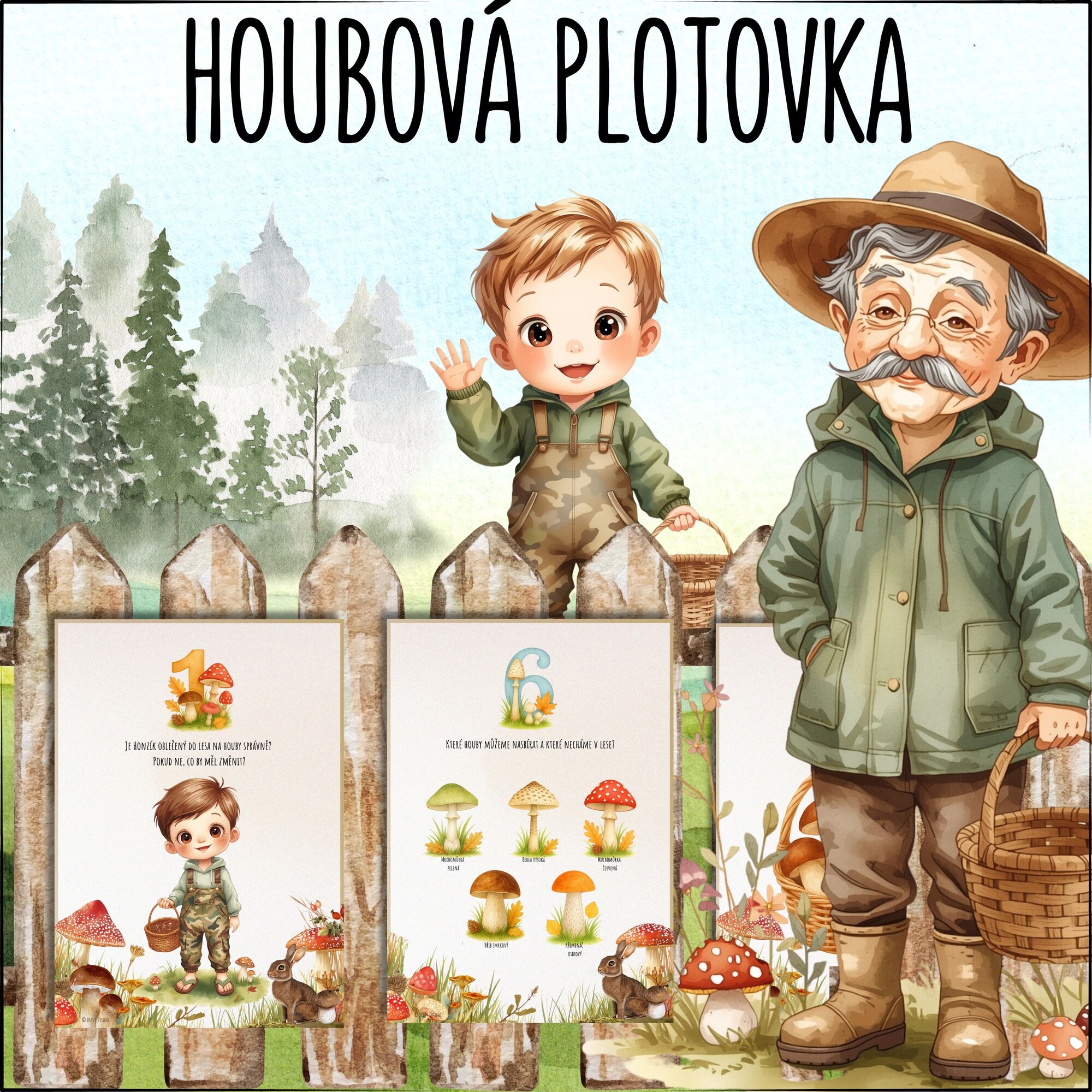 Houbová plotovka je venkovní stezka plná hravých úkolů o houbách a lese. Stačí vytisknout, zalaminovat a připevnit na plot.