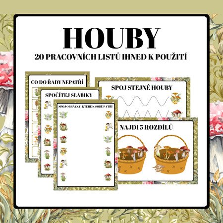Hledáte promyšlený, hravý a pestrý materiál, který děti nejen zabaví, ale také je něco naučí? Přináším vám pracovní listy na téma houby, které vám ušetří čas a usnadní práci.