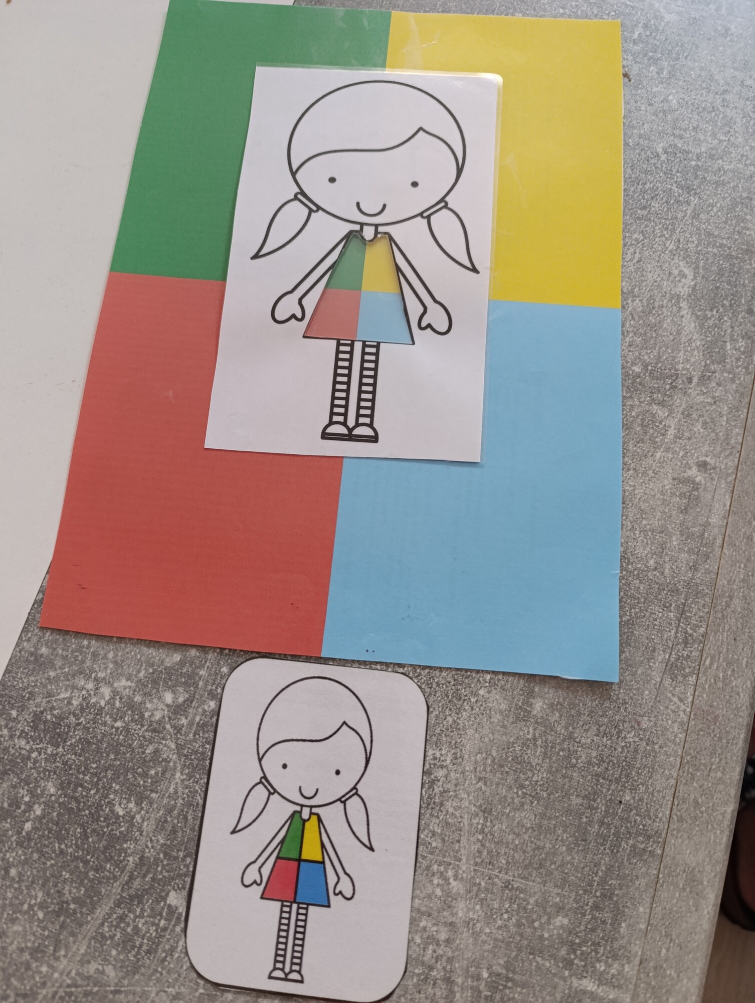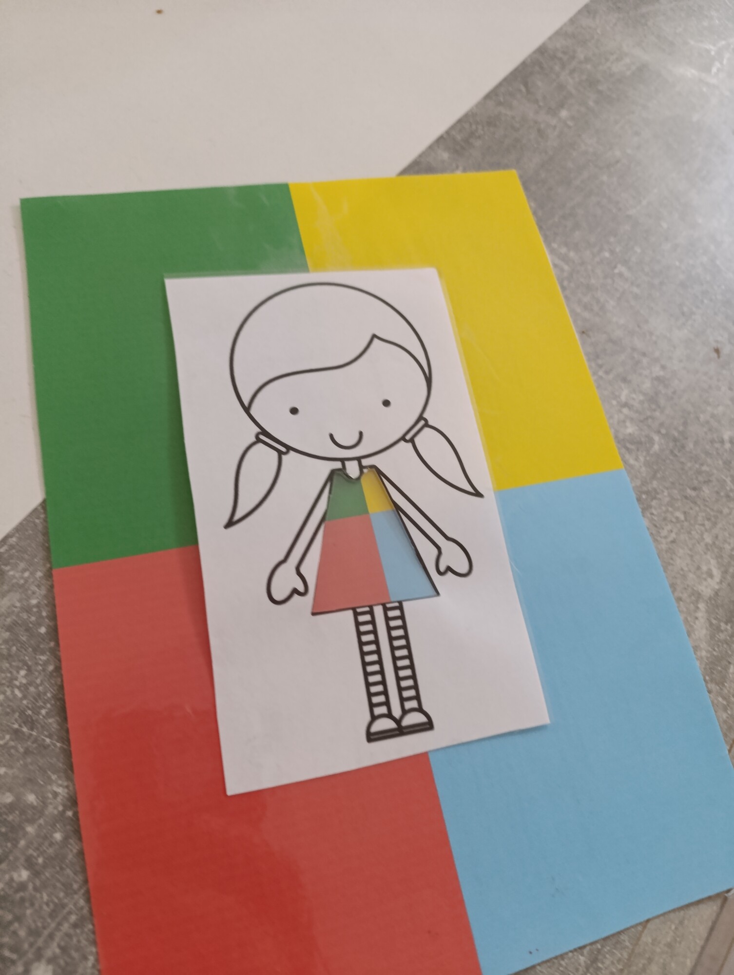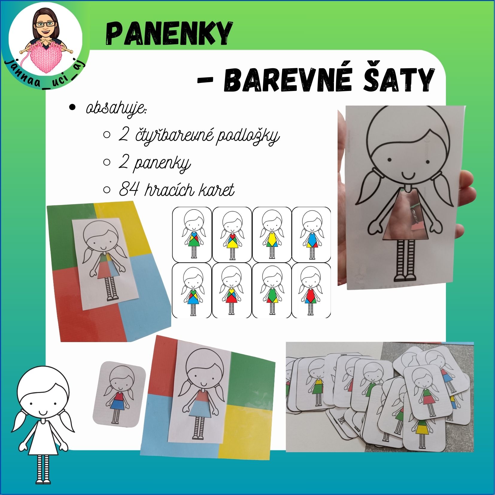 - Na kartě je panenka s barevnou kombinací sukně (kombinace červená, zelená, žlutá, modrá).