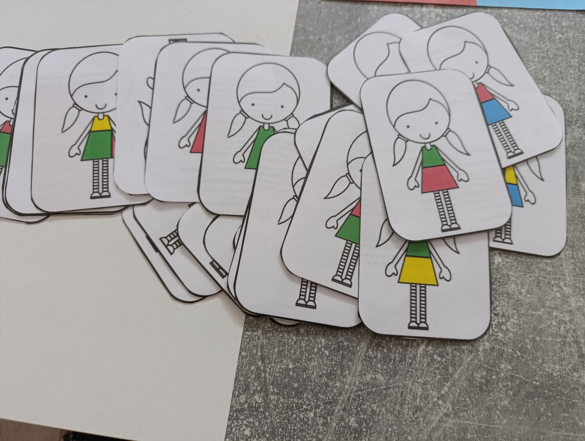 - Každý hráč dostane jednu panenku a jednu barevnou podložku.