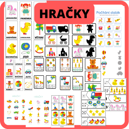 děkuji, že jste si vybraly tento vzdělávací materiál zaměřený na téma hračky, které je dětem blízké, přirozeně je motivuje a podporuje jejich chuť objevovat a učit se hrou.