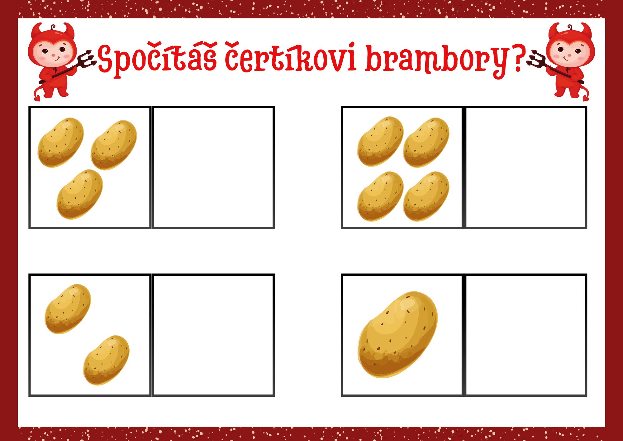 Soubor obsahuje úkoly jako hledání polovin obrázků, počítání bonbonů či brambor, třídění potravin, stíny, řady, rozdíly, jednoduché labyrinty a tvoření. Doplňují ho čtyři smyslové aktivity (např. čertovská lavina či obláčková pěna) a čtyři krátké pohybové hry, které dětem přirozeně střídají činnosti od klidových k aktivnějším.