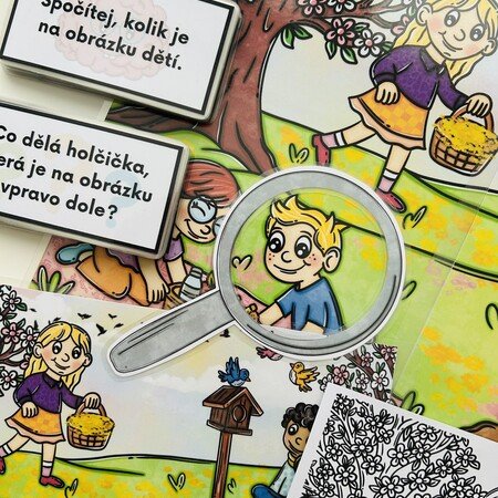 - Přemýšlení – otázky vedou děti k zamyšlení, logickému úsudku a práci s detaily.