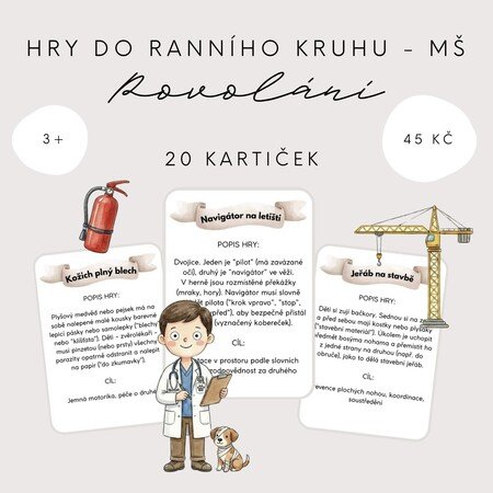 Každá hra má svůj název, jasný popis pravidel i cíle, takže si můžete snadno vybrat tu, která se nejlépe hodí do vaší aktivity - ať už doma, ve školce nebo venku.