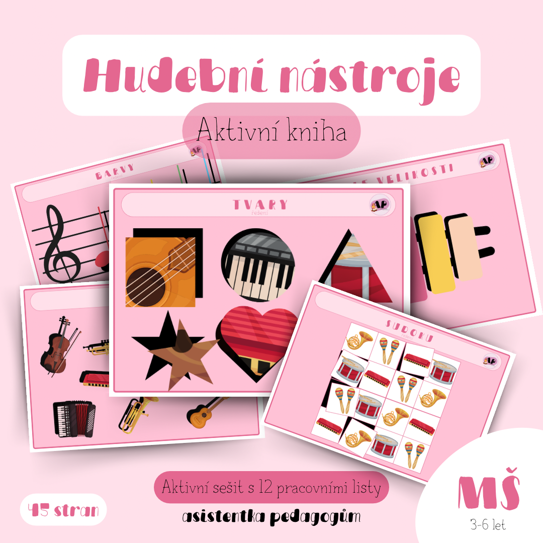 - Didaktický materiál zaměřený na poznávání hudebních nástrojů, rozvoj zrakového vnímání, jemné motoriky, soustředění a logického myšlení. Děti aktivně pracují s obrázkovými dílky, doplňují úkoly a hledají správná řešení přímo na pracovních listech.