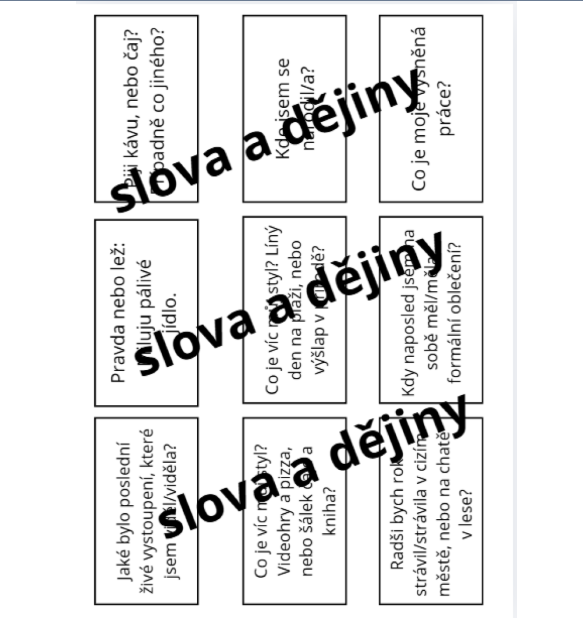 Tento materiál je skvělou pomůckou pro prolamování ledů (icebreakers), adaptaci nového kolektivu, nebo jako osvěžení hodin českého jazyka a občanské výchovy.