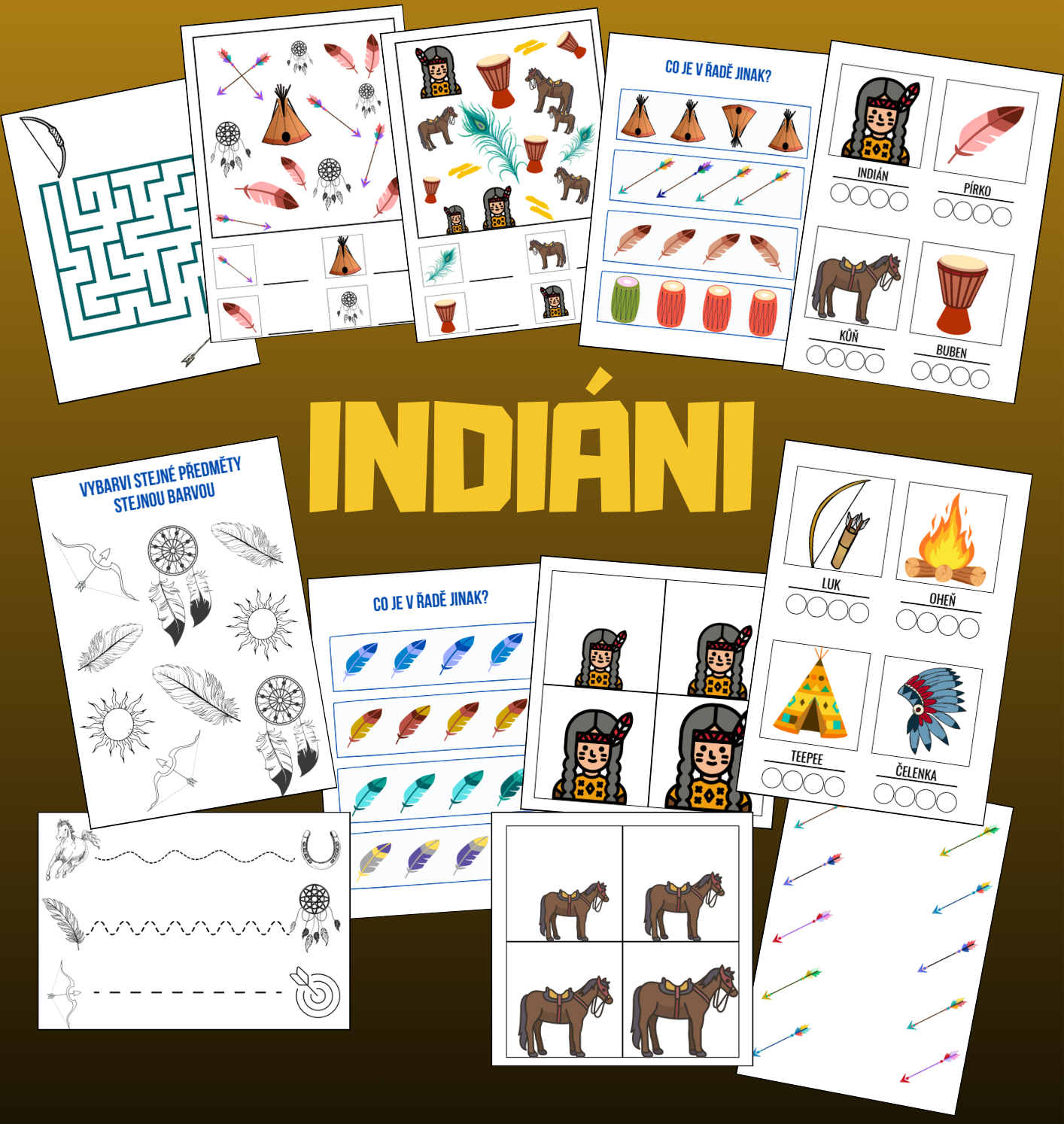 - 14 pracovních listů s indiánskou tematikou, které děti zaujmou na první pohled