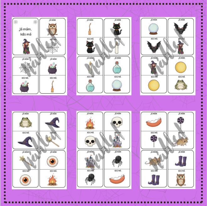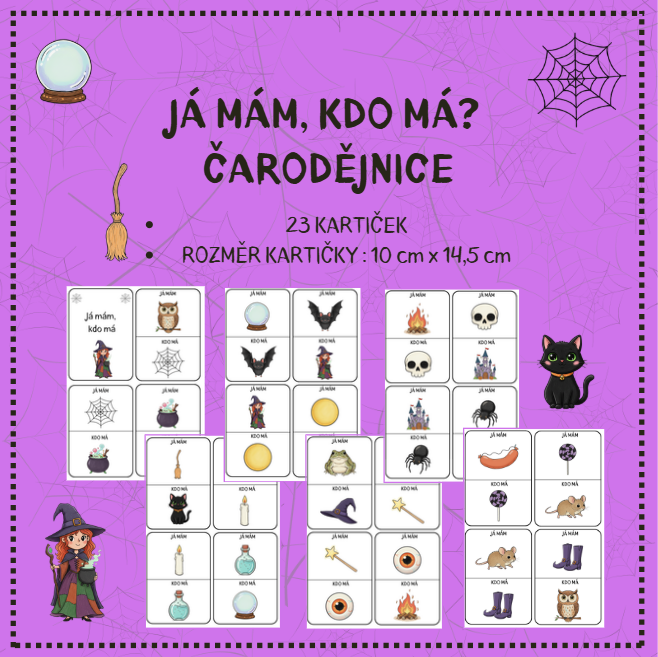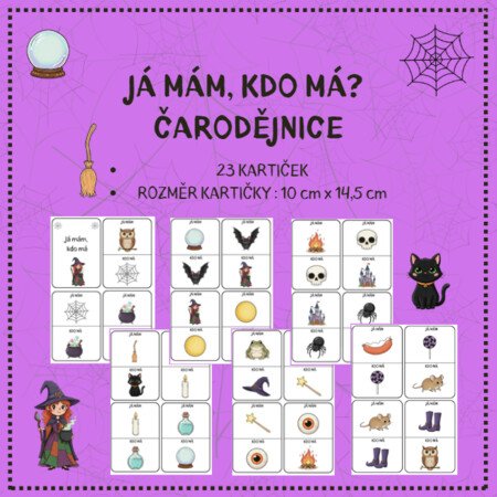 Každé dítě dostane kartičku. Jeden začíná: „Já mám… Kdo má…?“ a hra pokračuje, dokud se neuzavře kruh. Jednoduché, zábavné – a pokaždé jiné!